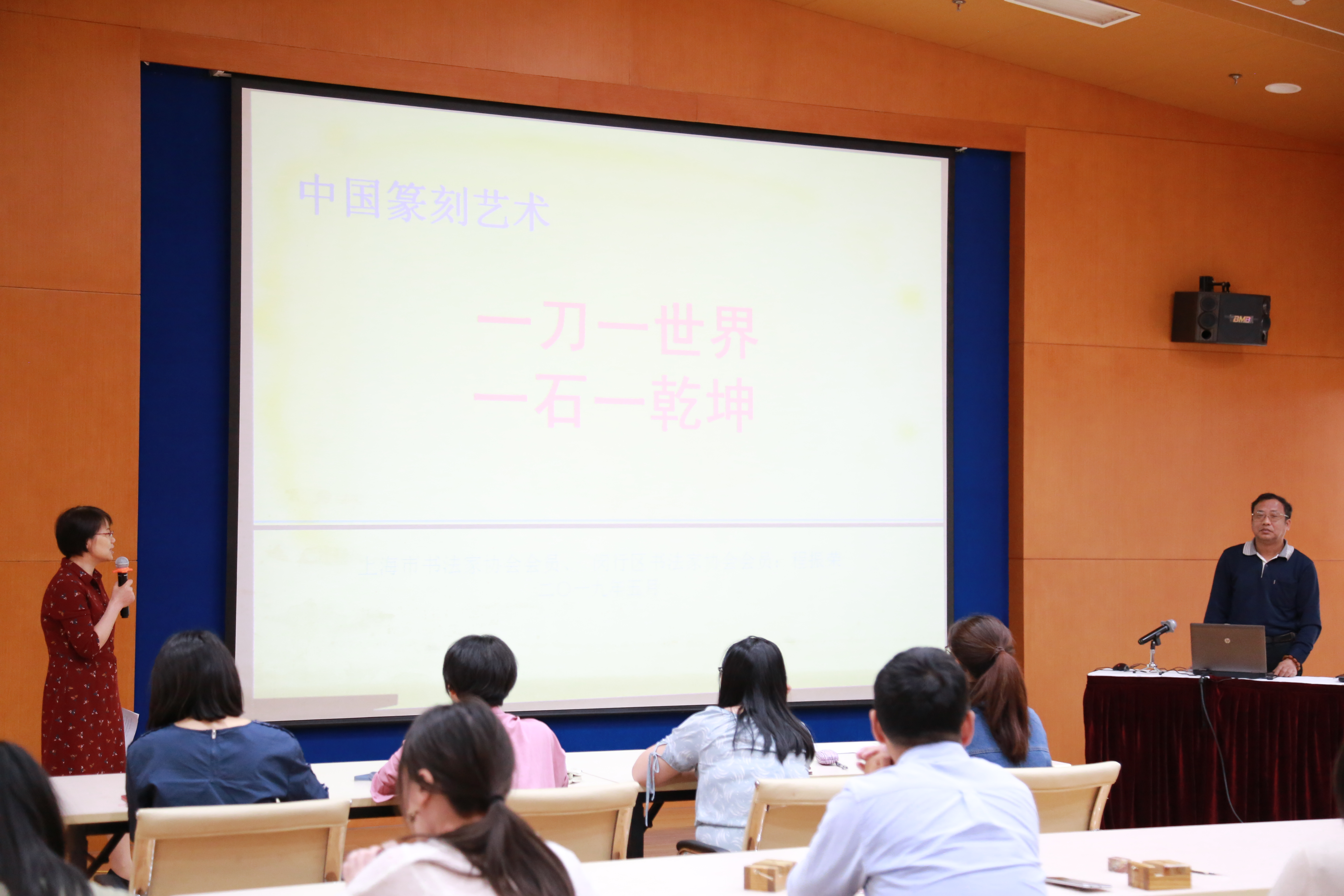 本次海尚讲堂邀请到上海市书法家协会会员、闵行区书法家协会会员程振荣老师作中国篆刻艺术赏析讲座,同时开展了篆刻体验活动。程振荣老师为每位报名读者提前设计了个人签名印章,现场教学篆刻技法,让读者们体验治印的各个流程。