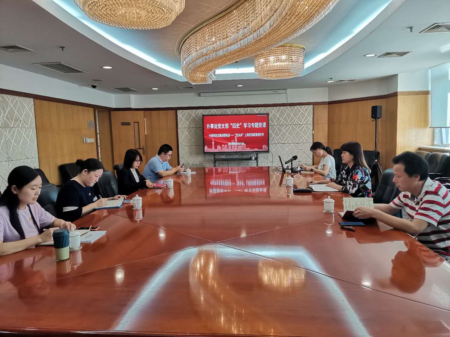 本网讯 9月3日上午,外事处党支部开展主题党日活动,黎晓晴同志为支部党员上题为“中国开放发展历程略谈——‘排头兵’上海的实践案例分析”的党课。这是支部开展“四史”学习教育、支部党员全员上党课的第三堂课。