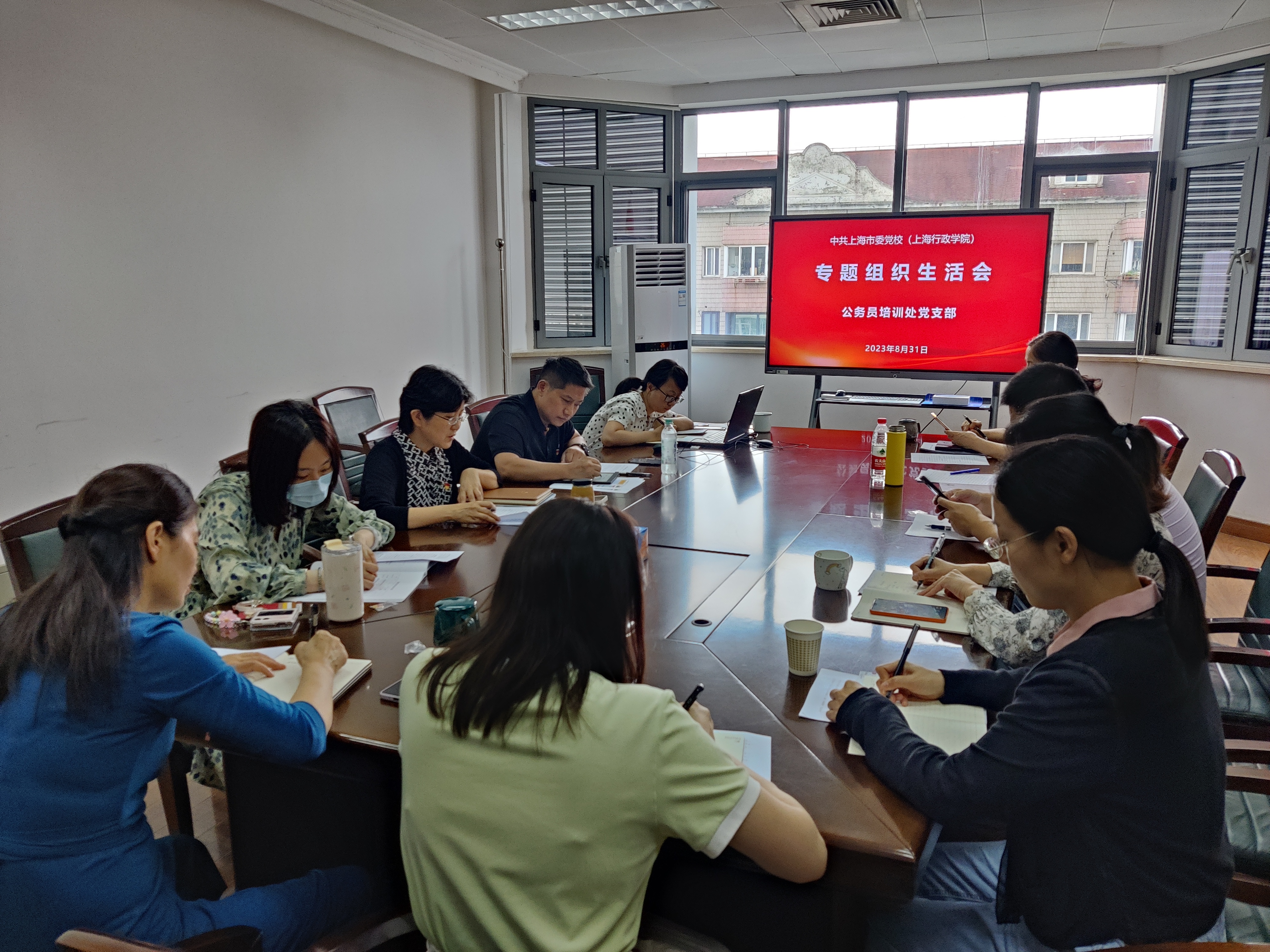 本网讯 根据校(院)机关党委主题教育工作部署要求,8月31日上午,公务员培训处党支部在礼堂南楼五楼会议室召开学习贯彻习近平新时代中国特色社会主义思想主题教育专题组织生活会。公务员培训处党支部全体党员参加。