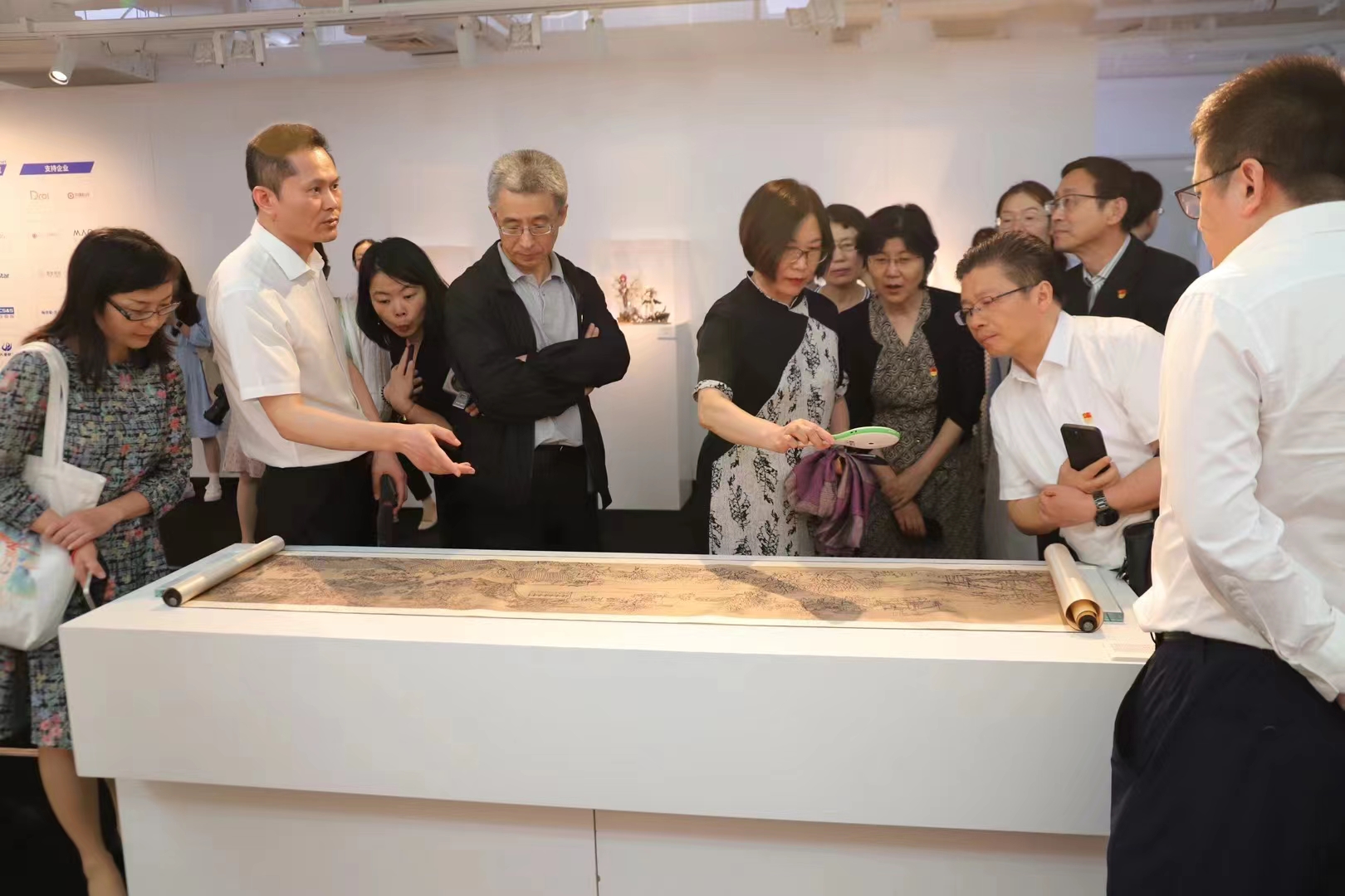 在现场考察环节,全体党员赴九点水美术馆,参观“元创未来”元宇宙设计创意大赛线下成果展。虹梅街道党工委书记范润生,徐汇区政协委员、趣加互娱总裁陈玉林陪同考察。范润生、陈玉林结合习近平总书记在文化传承发展座谈会上的重要讲话,从最前沿的元宇宙产业形态、到最传统的文化传承赋新,详细讲解数字技术如何赋能中华优秀传统文化,实现创造性转化、创新性发展。党员同志们在沉浸式体验中感受到了科技+文化的独特魅力。
