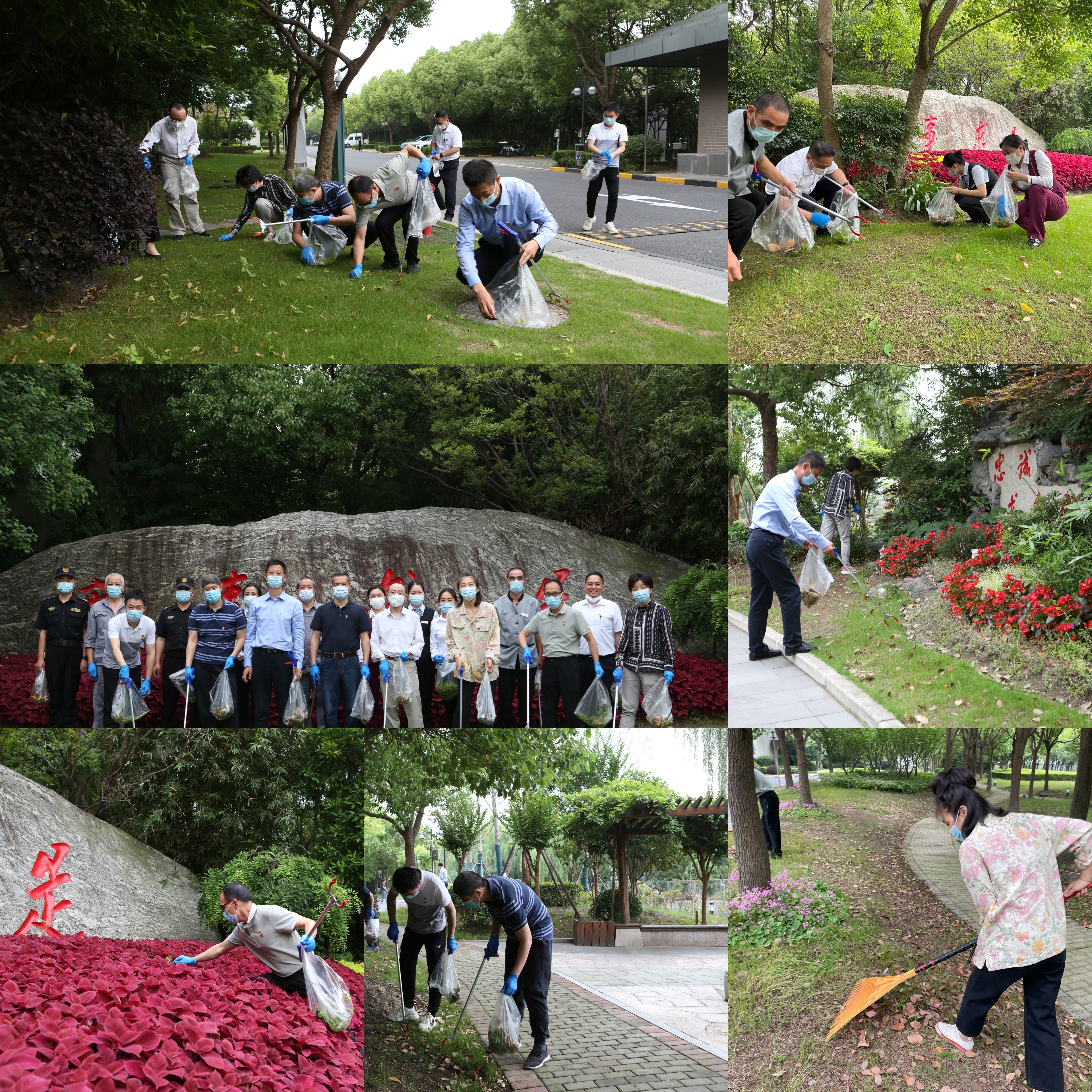 本网讯 6月5日,第52个世界环境日来临之际,淀山湖校区管理办公室党支部全体党员与服务单位员工共同开展洁净校园志愿服务活动。