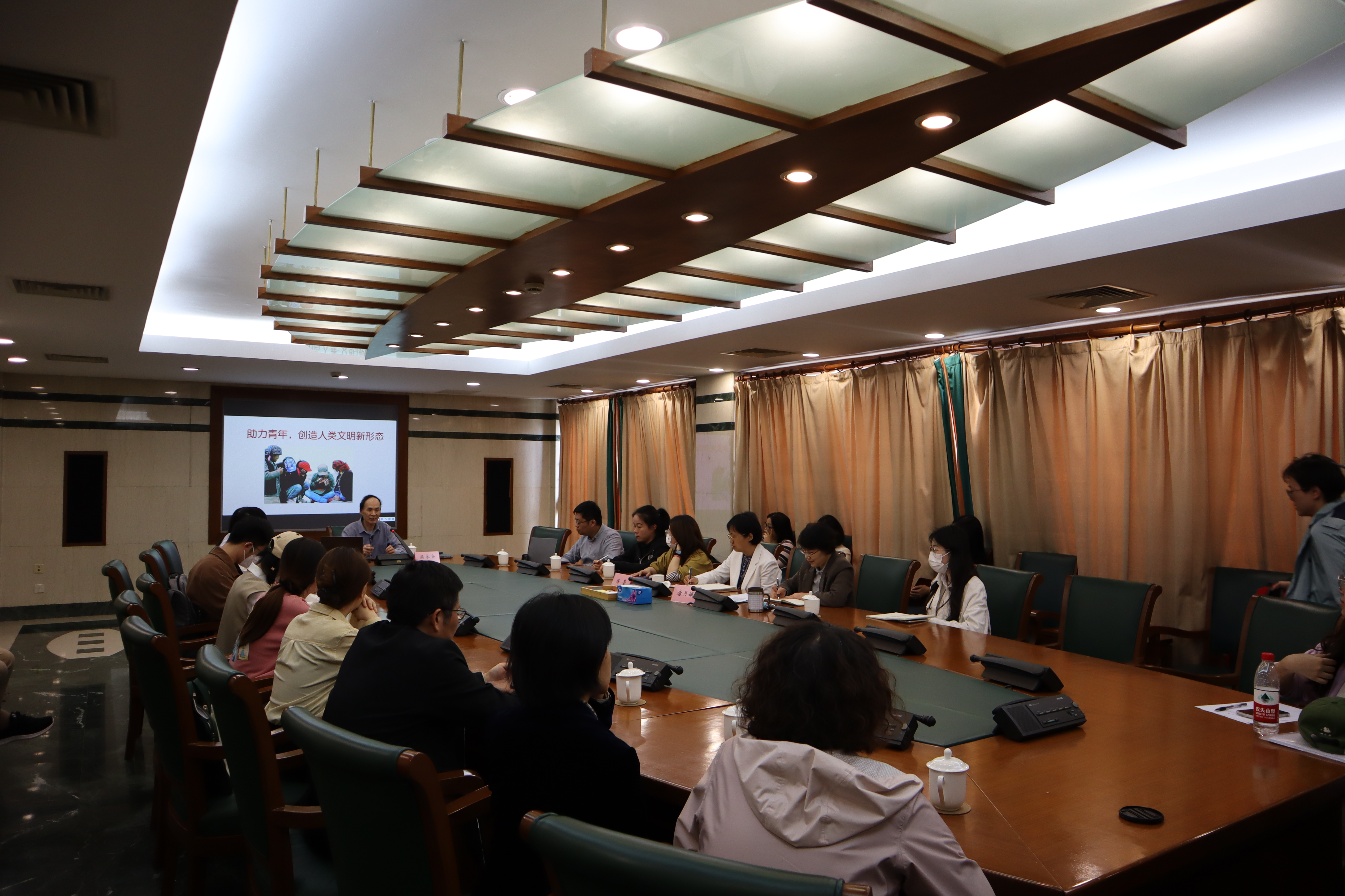 本网讯 5月10日中午,由图书馆和党群工作部共同主办的第十届校(院)读书月系列活动之“海尚讲堂”在图书馆五楼第一学术会议室举行,复旦大学中文系教授梁永安作主题为“助力新青年 创造人类文明新形态”的讲座。讲座由图书馆馆长唐月娥主持。校(院)教职工、研究生和学员共四十余人参加。