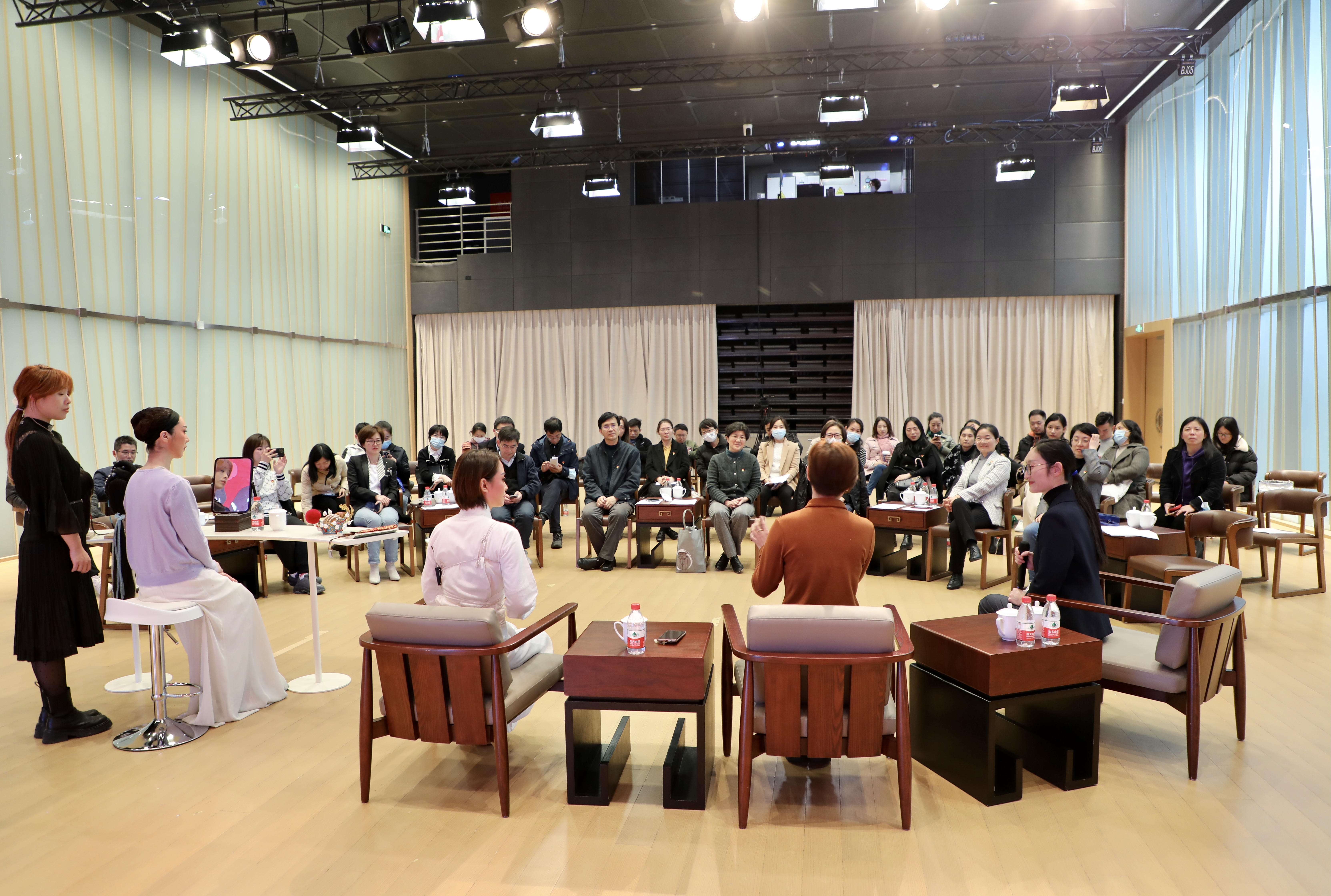 参观完毕,四个支部的党员汇聚剧院“戏·聚”演艺空间,围绕主题进行了交流分享。上海越剧院二团团长樊婷婷向党员们介绍了上海越剧院发展、越剧《红楼梦》的演出史。为了让党员们更加近距离地了解越剧文化,越剧二团妆造老师向大家现场进行了“红楼宝黛”妆造展示,并由两位青年越剧表演艺术家李绪丹、王婉娜联袂演绎了《红楼梦•读西厢》的经典片段。时而清悠婉转,时而俏丽洒脱的曲调让党员们沉浸其中,演出结束后现场响起了阵阵掌声。