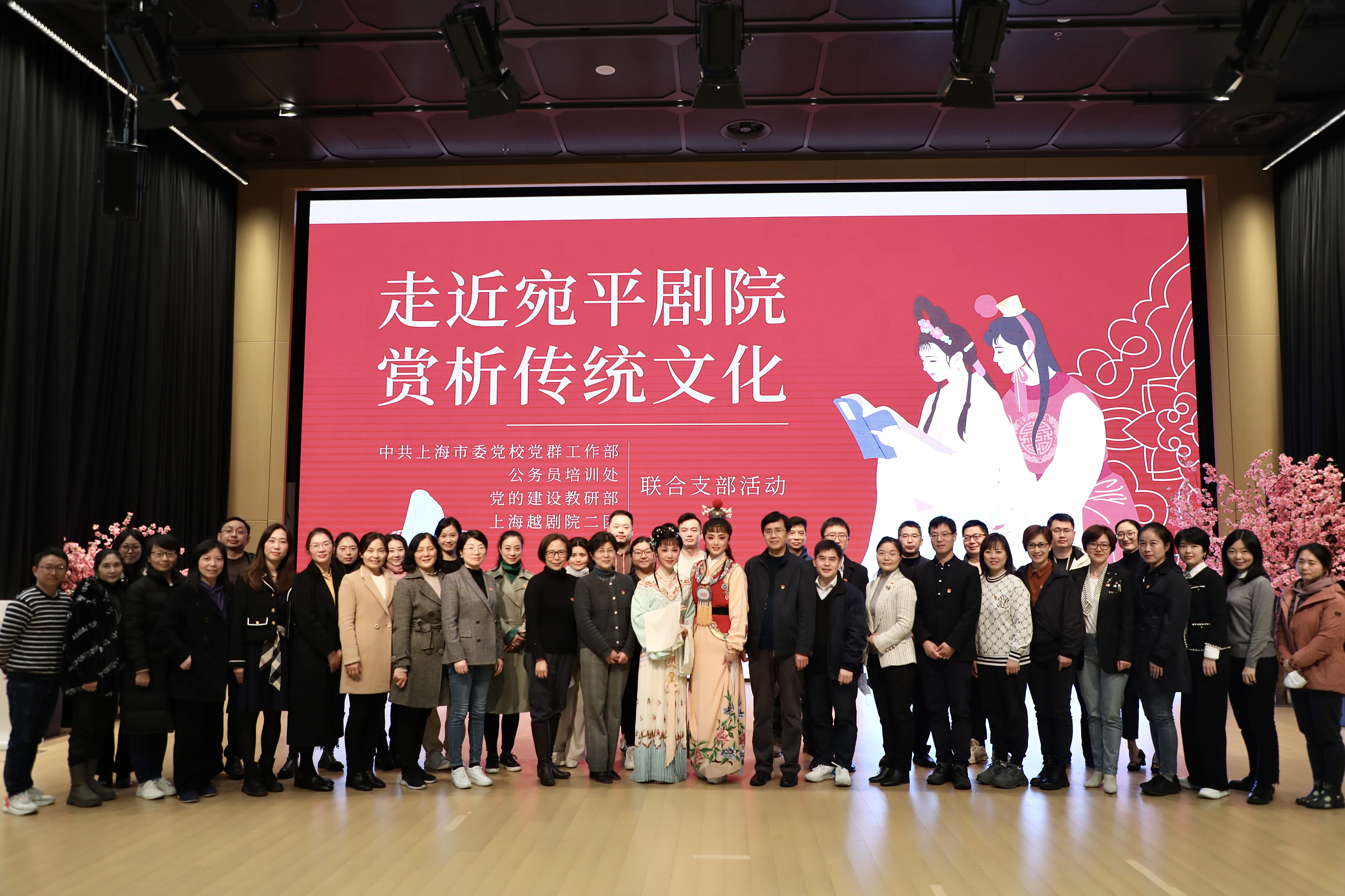 本网讯 3月21日下午,党的建设教研部党支部、党群工作部党支部、公务员培训处党支部与上海越剧院二团党支部开展党建联建,赴徐汇宛平剧院,以“走进宛平剧院,赏析传统文化”为主题进行参观交流。