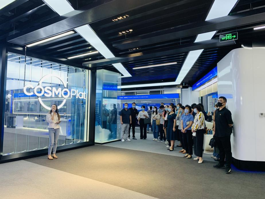 在海尔卡奥斯COSMOPlat工业互联网创新应用体验中心,大家在讲解员的带领下沉浸式体验了新型物联网生态模式,详细了解卡奥斯工业互联网平台为学校构建的线上校史馆系统,为服装品牌打造的智能试衣镜,为党课建设的VR设备等合作服务案例。其中,智慧党建体验区中的“党建基层服务平台”采用新技术、新手段、新形式应用VR/AR/AI、云计算、大数据等技术,将《党建》杂志、《学习活页文选》、党建网、党建微平台、集体学习课件、VR/AR课件等融于一体,充分展示习近平新时代中国特色社会主义思想、党的路线方针政策、各地党建工作的好经验好做法及先进人物事迹等学习内容,以全新的重交互、沉浸感进行学习。