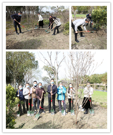 本网讯 3月10日,正值仲春时节,草长莺飞,湖光潋滟的淀山湖校区迎来了第44个全国植树节。校区党员干部在三号门大草坪,种下了金桔树、樱桃树等寓意祥和美好的多棵木本植物。近期新冠疫情时有反复,支部组织的植树活动,既是对“绿水青山就是金山银山”生态环保理念的切实遵循,更是符合对淀山湖校区全体师生员工认真贯彻“尊重自然、爱护自然”,促进人与自然和谐共生理念的一贯要求。