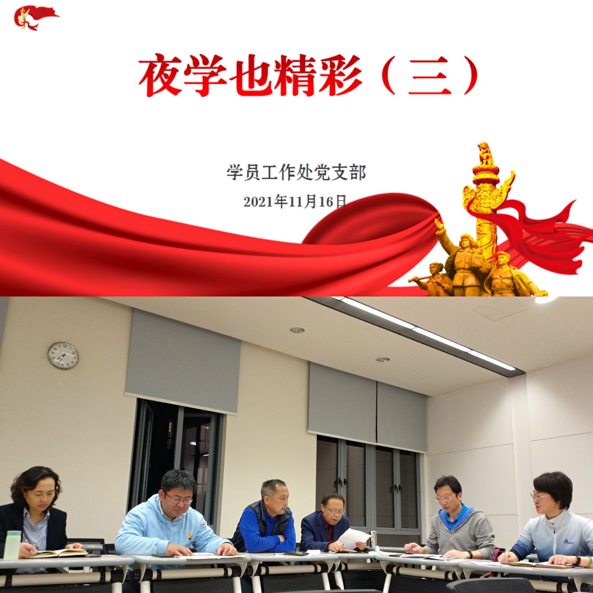 本网讯 11月16日晚上,学员工作处党支部开展第三次班主任“夜学也精彩”学习活动。活动共分为两个部分,观看纪录片《大上海》第三集《东西汇流》和集中学习讨论十九届六中全会精神。