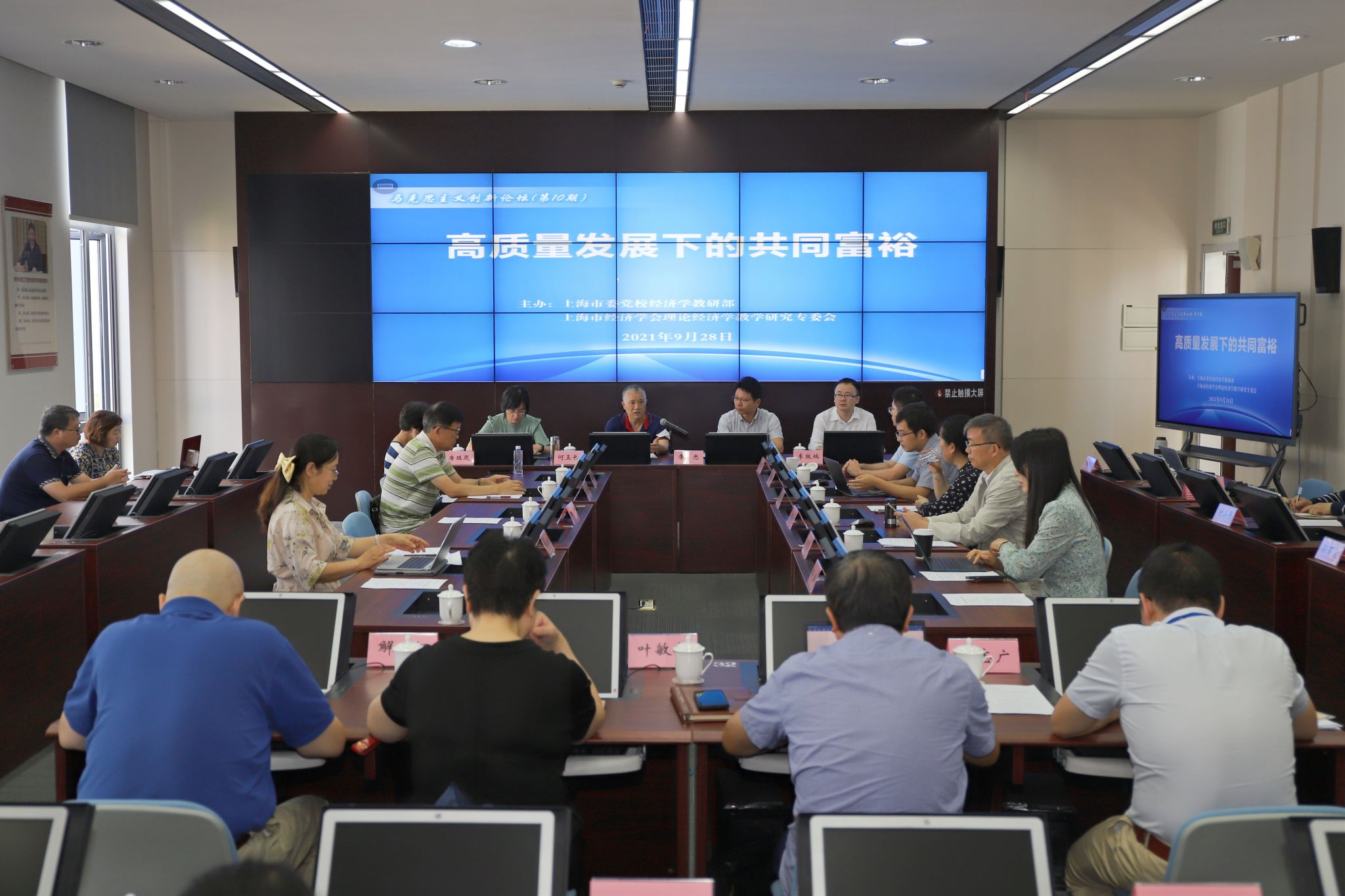 本网讯 校院第十期马克思主义创新论坛——“高质量发展下的共同富裕”学术研讨会于9月28日召开。校(院)经济学教研部主任唐珏岚、副主任李敦瑞主持会议,市发展和改革委员会副主任阮青,上海立信会计金融学院赵晓霞教授、汪雪兴副教授、余运江副教授,以及校(院)经济学教研部李鲁副教授等作了专题发言。上海财经大学何玉长教授、李超民教授以及上海对外经贸大学任再萍副教授等专家参与发言和讨论。