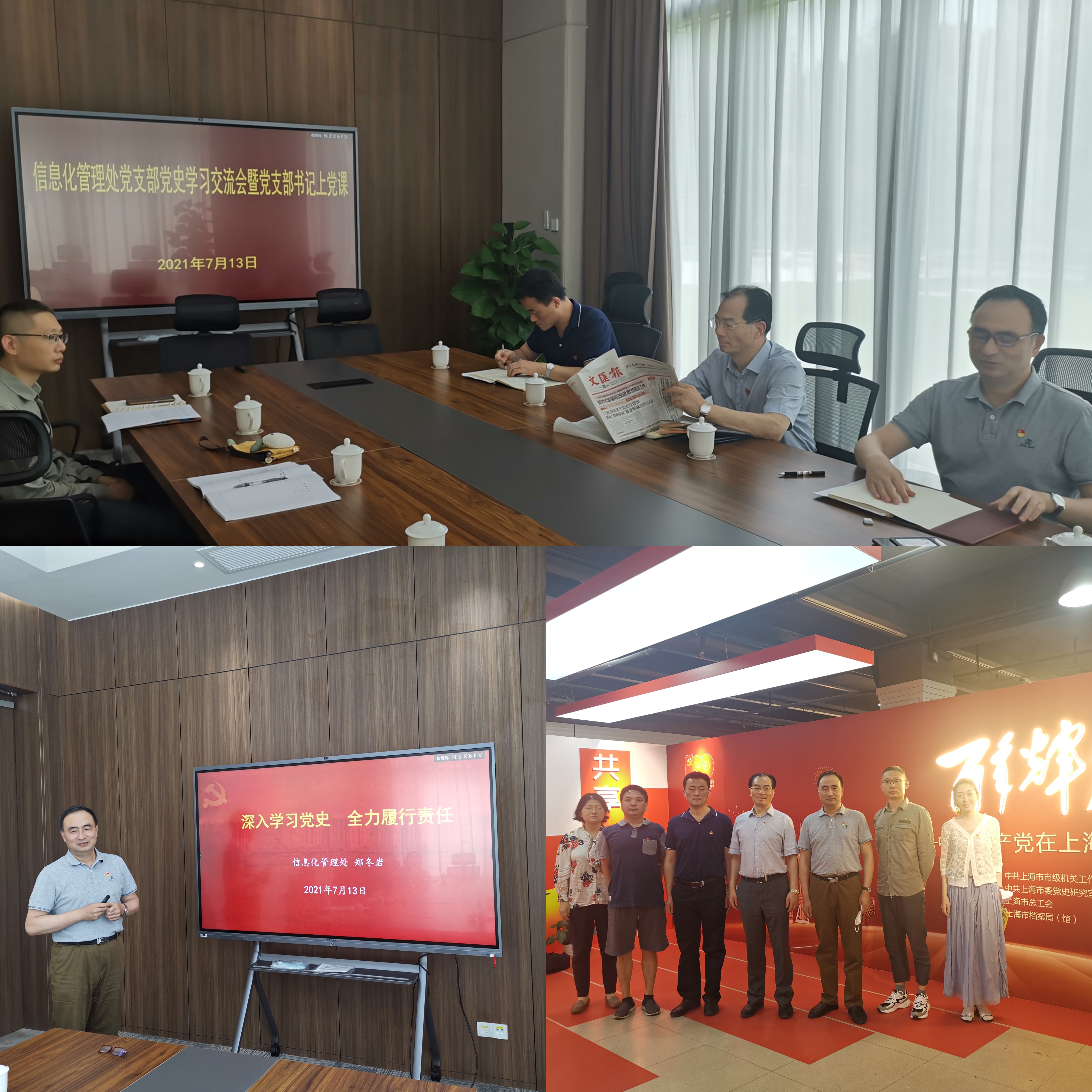 本网讯 7月13日下午,根据校(院)机关党委党史学习教育实施方案安排,结合本支部党史学习计划,信息化管理处党支部组织开展党史学习交流和支部书记讲党史专题党课活动。副校(院)长朱亮高以普通党员身份参加。会上,每位党员从牢记初心使命,增强责任担当,勇于攻坚克难等多个方面交流了学习党史的收获和体会。