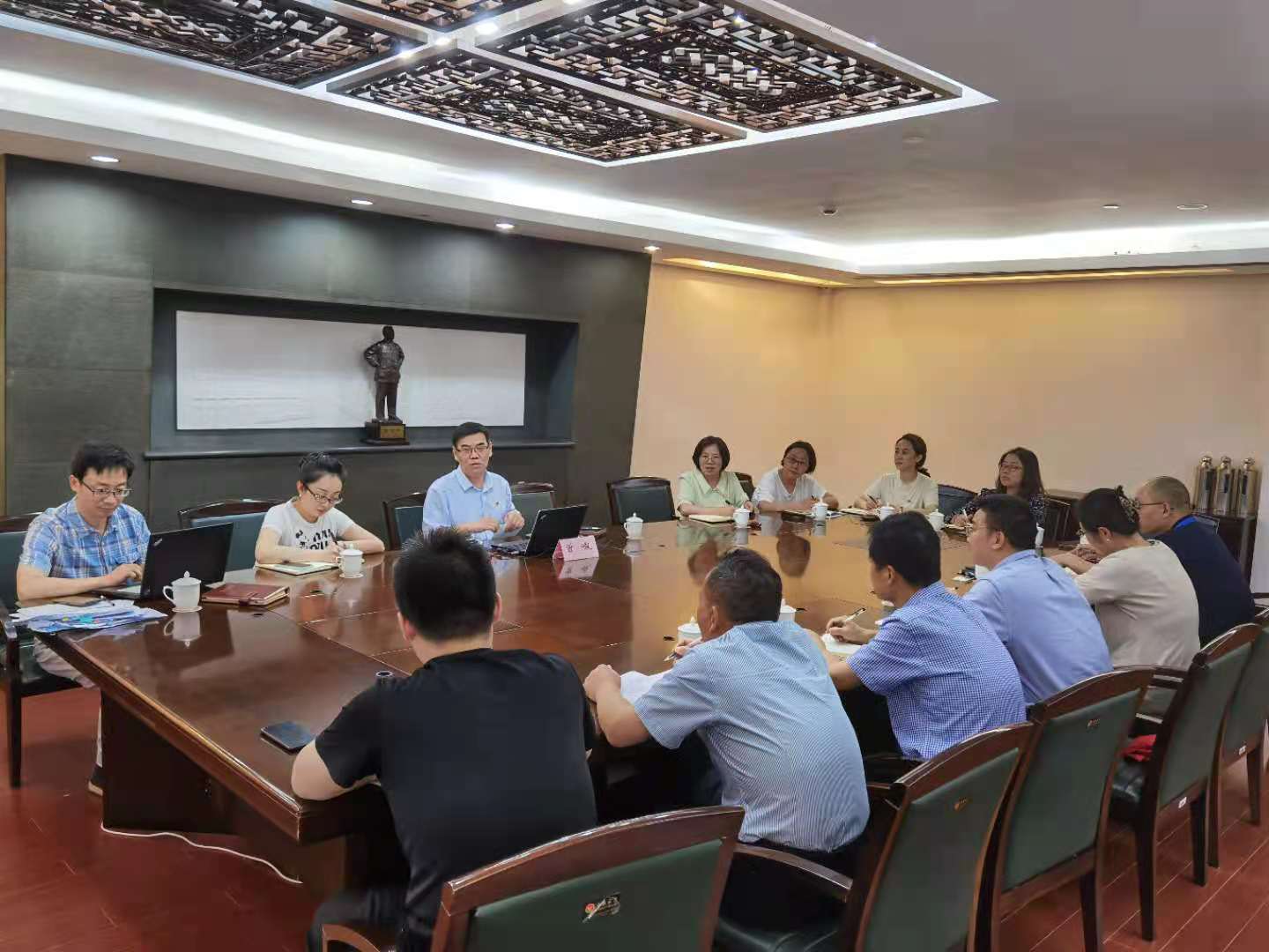 曾峻教授从“习近平总书记2021年新年贺词:百年征程波澜壮阔,百年初心历久弥坚。从上海石库门到嘉兴南湖,一艘小小红船承载着人民的重托、民族的希望,越过急流险滩,穿过惊涛骇浪,成为领航中国行稳致远的巍巍巨轮。胸怀千秋伟业,恰是百年风华”开始,从崇高理想但脚踏实地、勇于创新但充满智慧、服务人民但落到实处、自我革命但与时俱进等四个方面详细解读了百年中国共产党永葆生机活力密码。曾峻教授要求大家认真学习党史,加强和推进部门业务工作,提高服务质量,坚守底线、追求高线,以实际行动庆祝建党百年。