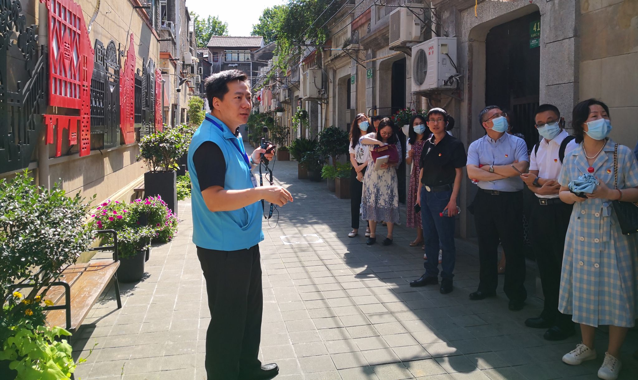本网讯 在即将迎来中国共产党百年华诞之际,6月21日下午,上海发展研究院党支部和海关学院党支部联组赴淮海中路街道开展以“四个淮海”解读人民城市建设主题党日活动。活动以行走党课的方式进行,由上研院于健宁老师担纲授课任务。