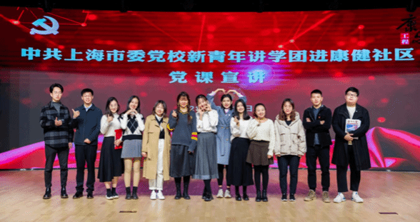 成立之初,“新青年讲学团”通过“引进来”和“走出去”,与同济大学、华东理工大学等上海高校理论学习社团深度交流经验。同年12月,讲学团突破校园边界,联合成立康健街道“康乐工程”理论宣讲团-上海市委党校“新青年讲学团”,并于康健街道党群服务中心,面向老党员宣讲十九届六中全会精神,创新结合理论解读与红色文艺表演,赢得街道居民群众的认可。