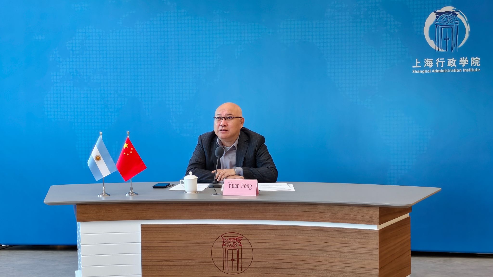 4月8日上午,我校政法教研部袁峰教授应邀为阿根廷公立大学联盟在线讲学。阿根廷萨米恩托将军国立大学副校长丕武德(German Pinazo)出席并致辞。