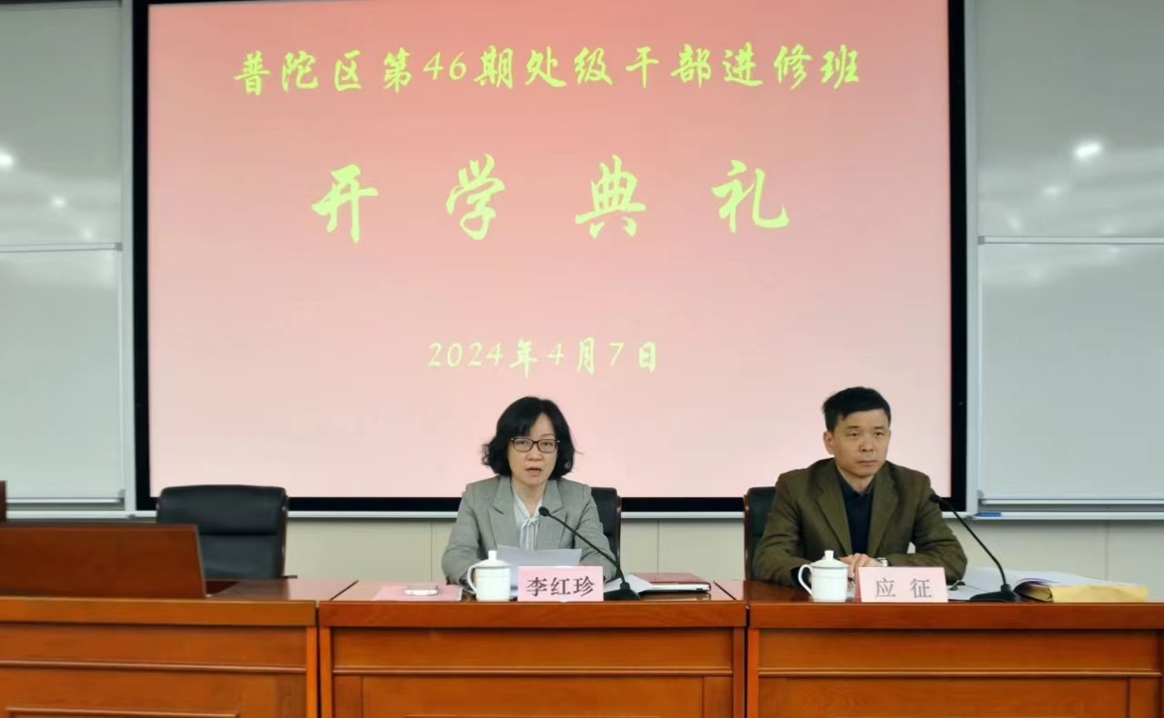 本网讯 4月7日上午,普陀第46期处级干部进修班开学典礼在区委党校举行。普陀区委常委、组织部部长、区委党校校长李红珍出席并作动员讲话,区委组织部副部长应征主持。46名处级班学员参加了开学典礼。