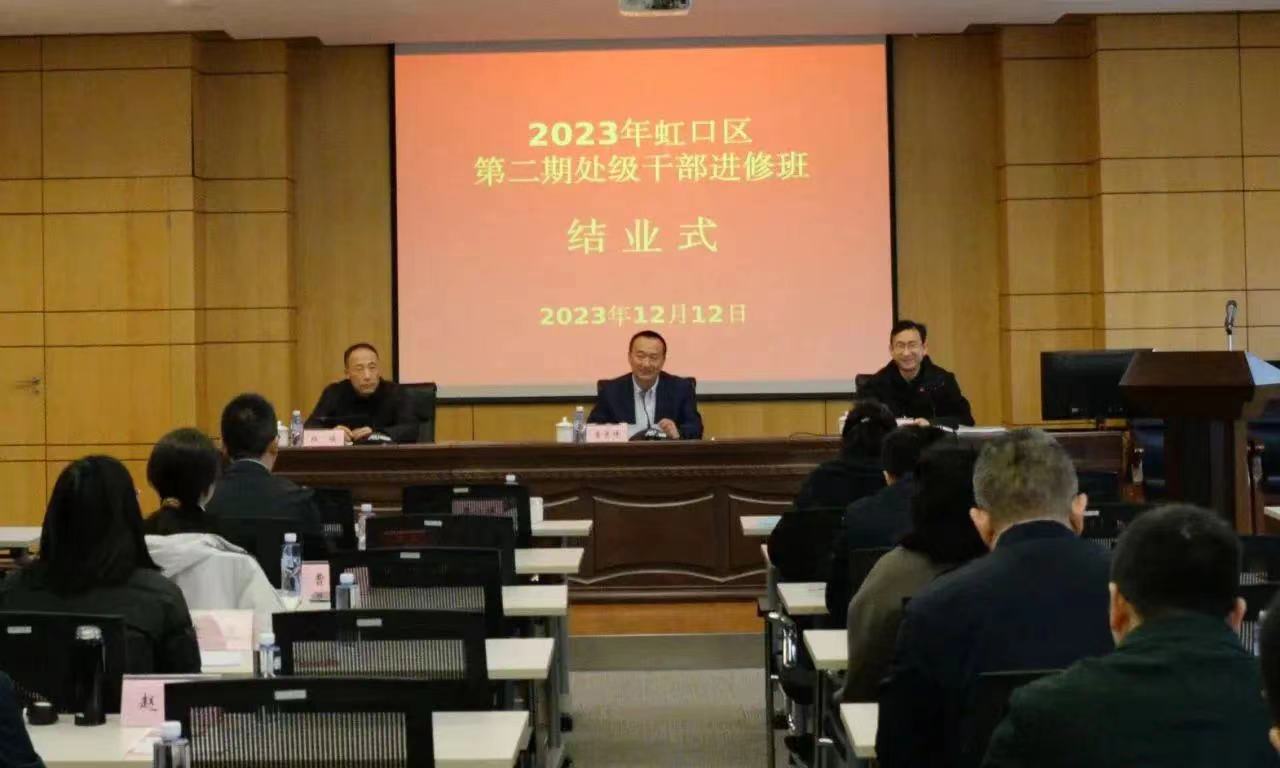 本网讯 12月12日上午,2023年虹口区第二期处级干部进修班结业仪式在区委党校举行。虹口区委副书记、区委党校校长姜爱锋,区委组织部部长蒋仁辉,区委党校副校长杨俊出席结业式。