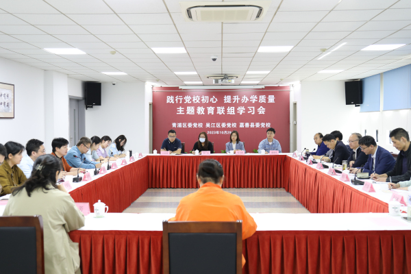 本网讯 为进一步提升主题教育实效,奋力推进示范区党校事业高质量发展,10月29日,青浦区委党校与吴江区委党校、嘉善县委党校开展“践行党校初心 提升办学质量”主题教育联组学习,三地党校校委班子成员及党员代表参加。青浦区委党校常务副校长陈菊英主持。
