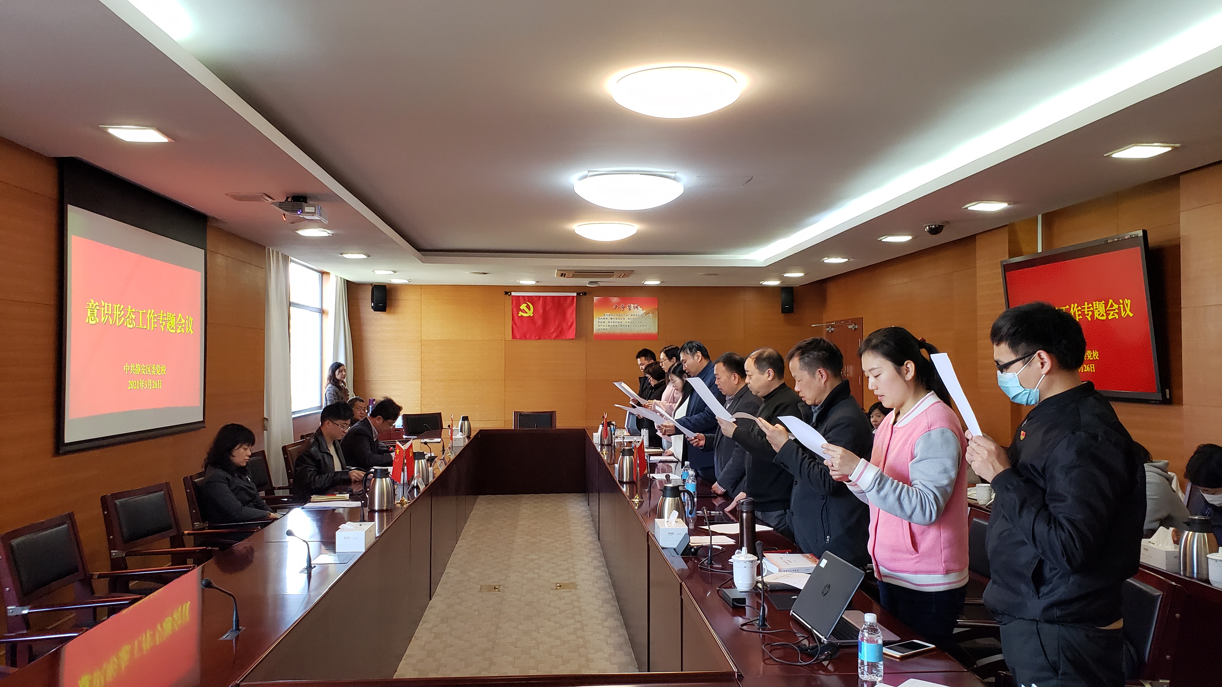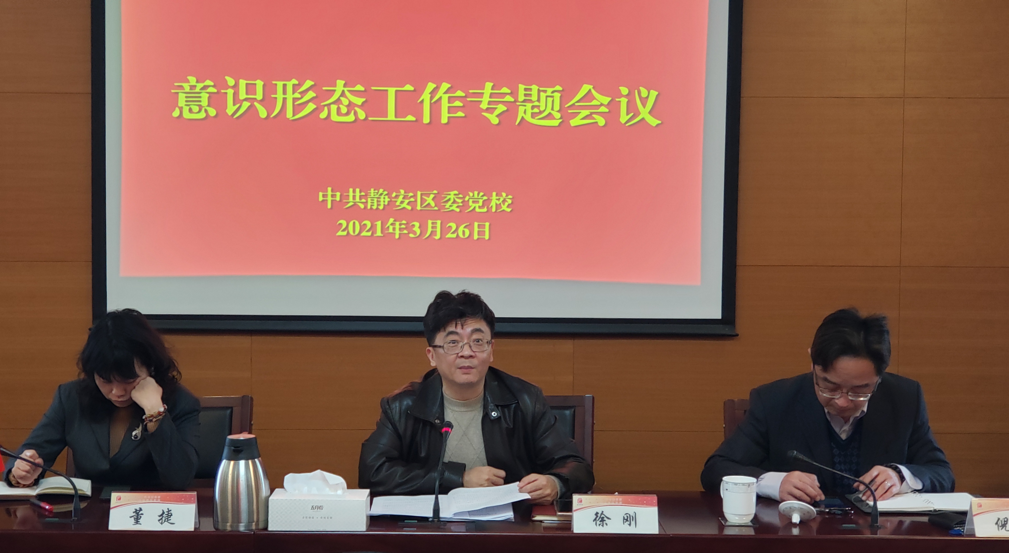 本网讯 为进一步加强和改进意识形态工作,3月26日上午,静安区委党校召开意识形态工作专题会议。常务副校长徐刚主持会议,全体党员参加会议,区纪委监委第一派驻组冯斌同志列席会议。