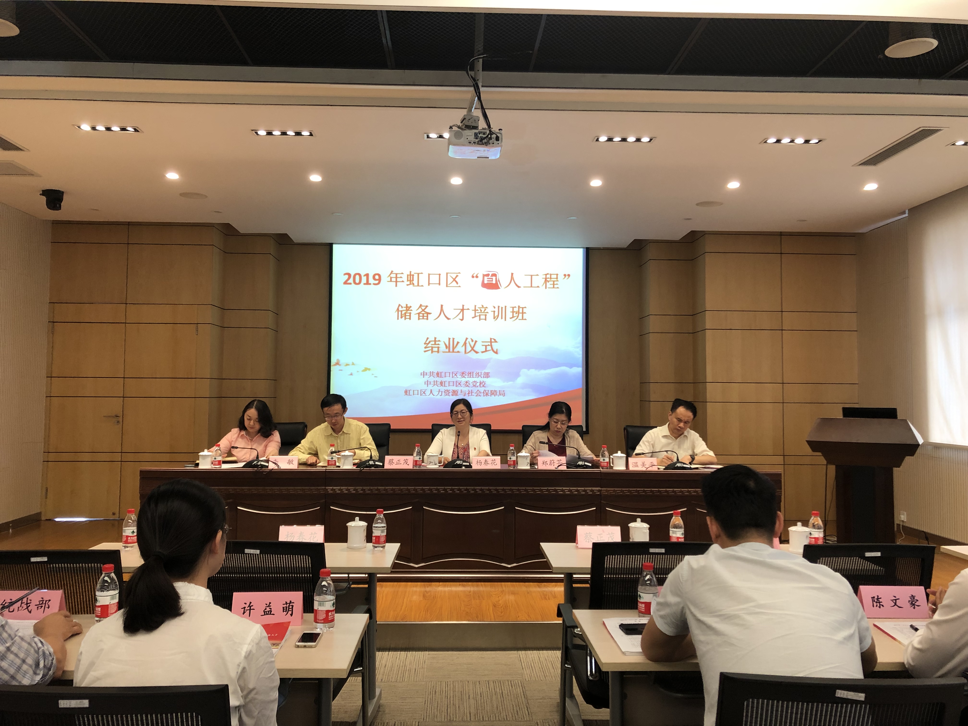 本网讯 9月30日,2019年虹口区“百人工程”储备人才培训班在区委党校顺利结业,虹口区委常委、组织部部长杨春华出席并讲话,区委组织部副部长郑蔚芸主持结业式,区人社局党组书记、局长蔡正茂,区委党校常务副校长温美平,区委办、统战部、商务委、国资委等单位领导参加。