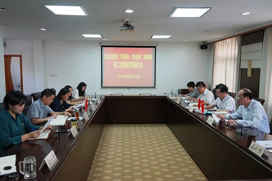 本网讯 9月27日,金山区委党校召开“不忘初心、牢记使命”主题教育第二次集体学习研讨会(党的政治建设专题),常务副校长孙秀强主持会议。区委主题教育第二指导组组长江海平出席会议并讲话。校班子成员、调研员、各科室长、党(总)支部委员参加学习会。