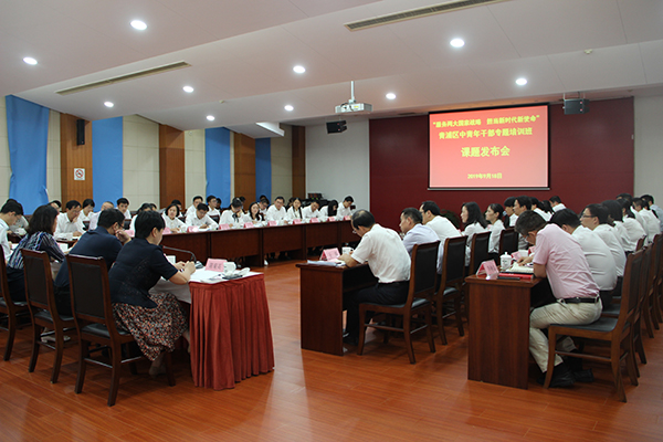 本网讯 9月18日下午,青浦区中青年干部专题培训班举办课题发布会。区委副书记、区委党校校长杨小菁,区委常委、组织部部长蒋仁辉,区委组织部副部长陆志斌,区委研究室主任朱加军,区委党校常务副校长陈菊英等参加。