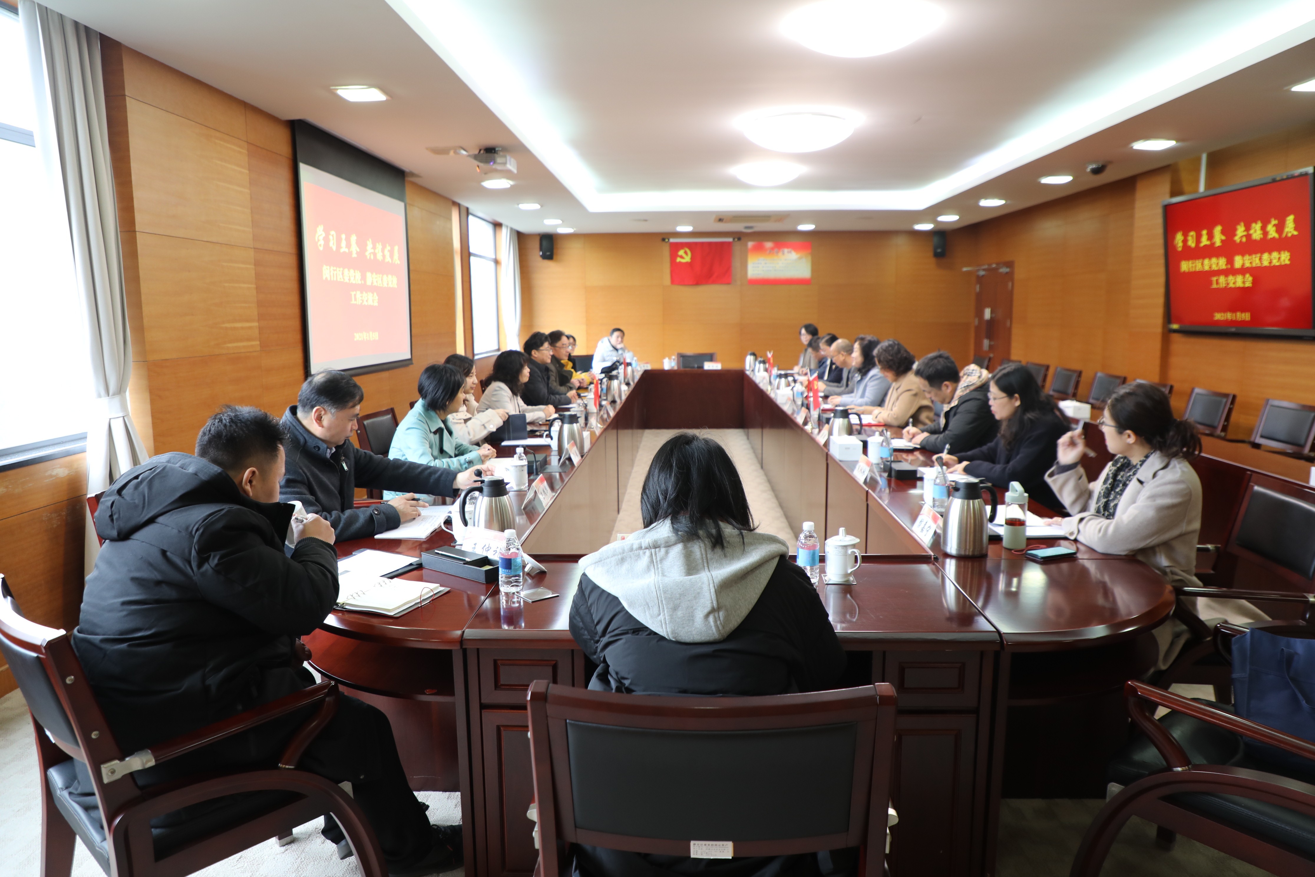 静安区委党校常务副校长徐刚对闵行区委党校一行表示欢迎,两校就干部教育培训、教学科研咨政、行政后勤管理、师资队伍建设等方面进行了交流和探讨,并希望今后进一步加强联系,互学互鉴,共同提高。