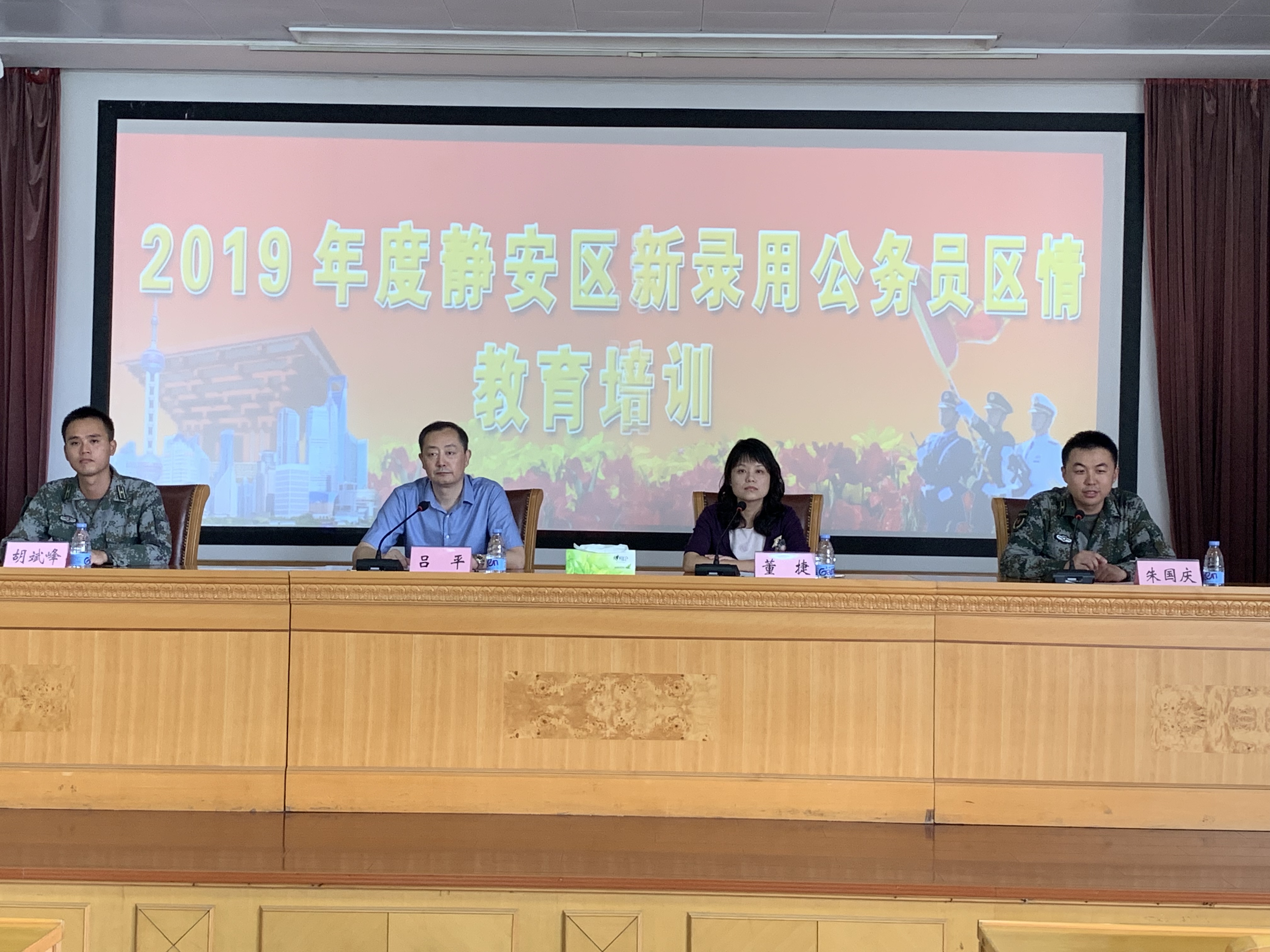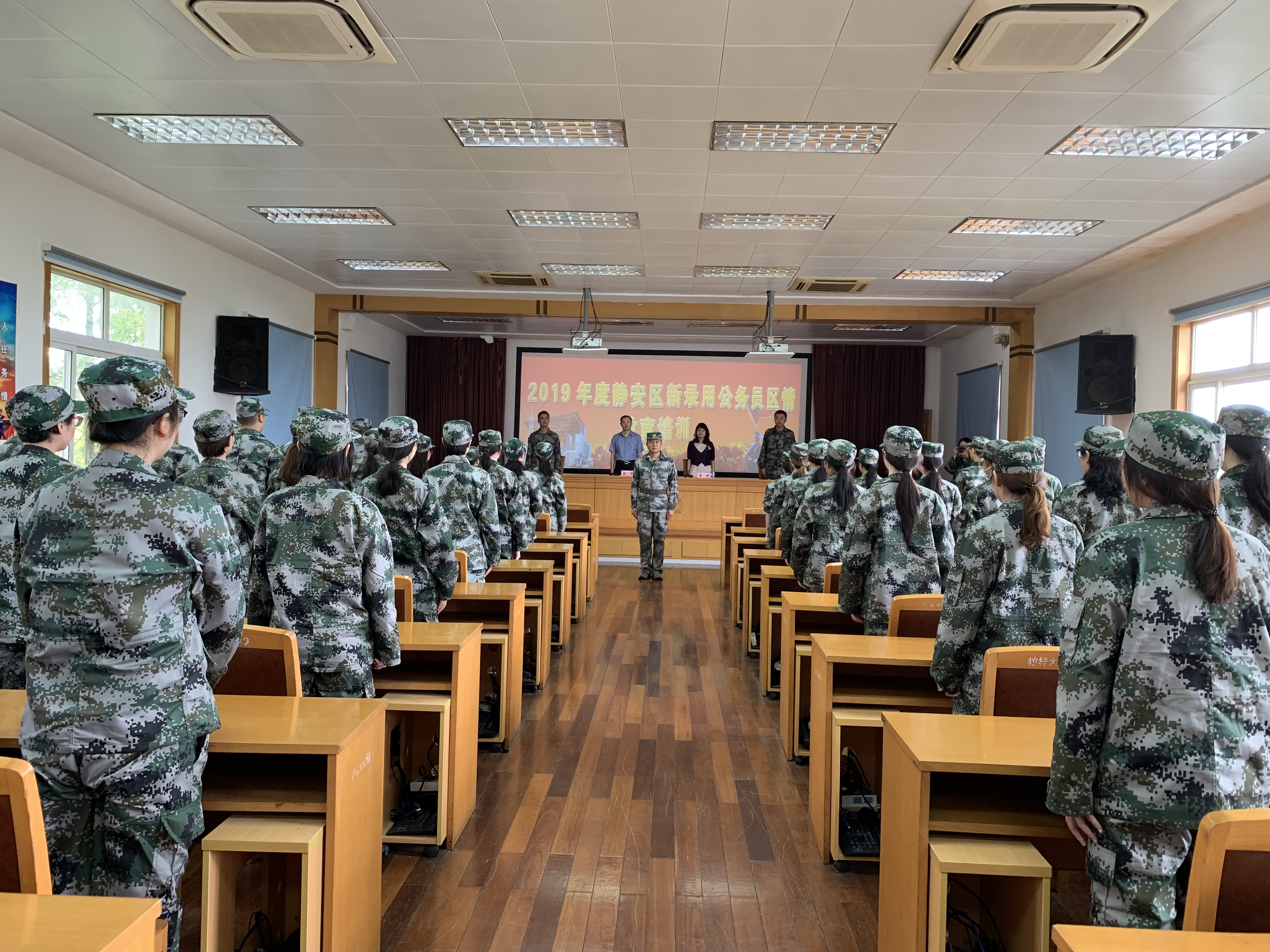 本网讯 9月2日,2019年度静安区新录用公务员区情教育培训开班仪式在上海警备区综合训练队举行。仪式由区委党校副校长、区行政学院副院长董捷主持并介绍培训计划。区委组织部副部长、区公务员局局长吕平作开班动员,上海警备区综合训练队队长胡斌峰、教导员朱国庆出席仪式。来自全区各单位的58名新录用公务员参加了此次开班仪式。
