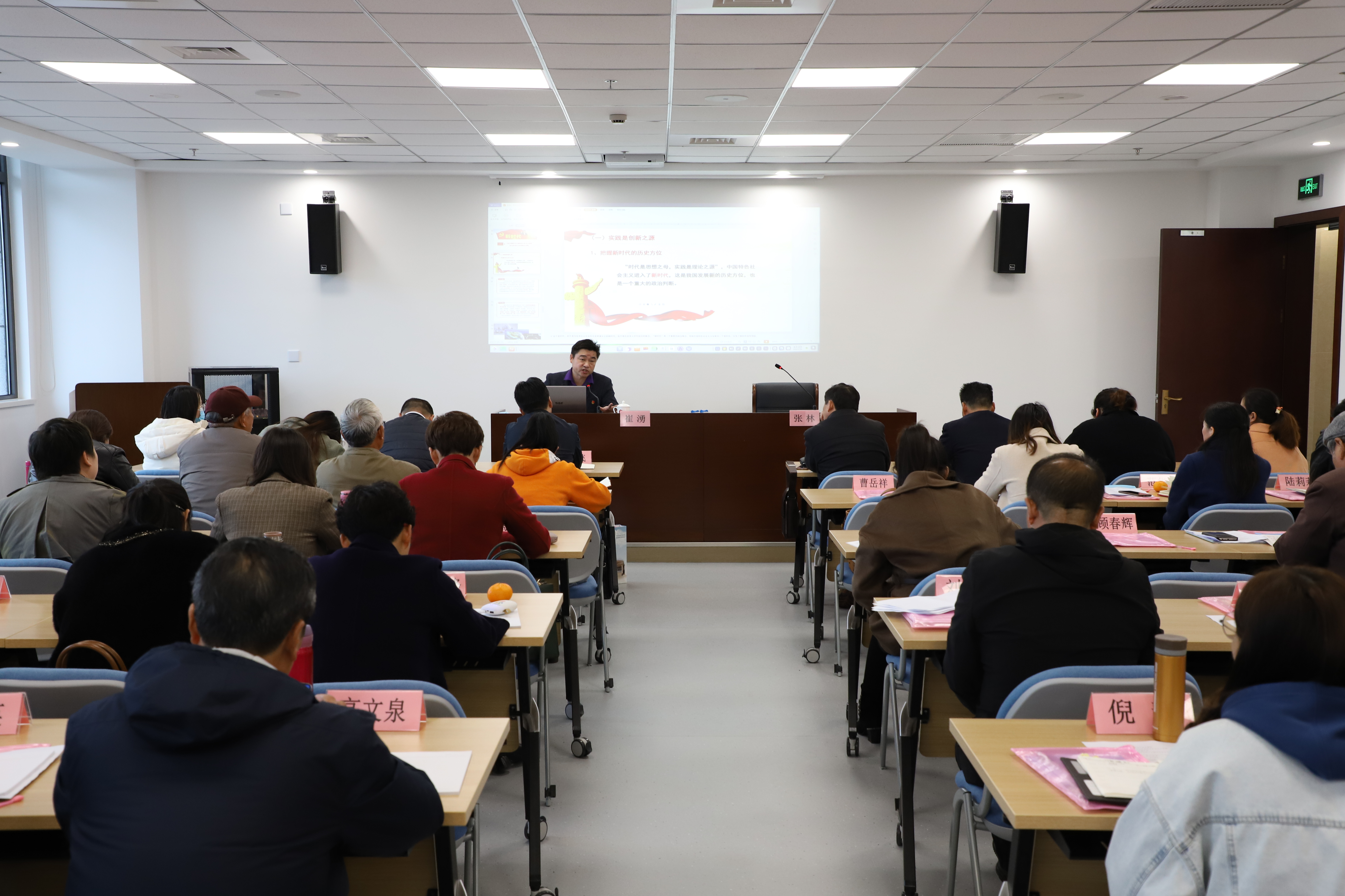崇明区委党校全体专职教师全程旁听党课并参与教学互动,以边听边学边问的方式提升自身精品课开发能力,也是党的十九届五中全会精神的集体学习和备课。