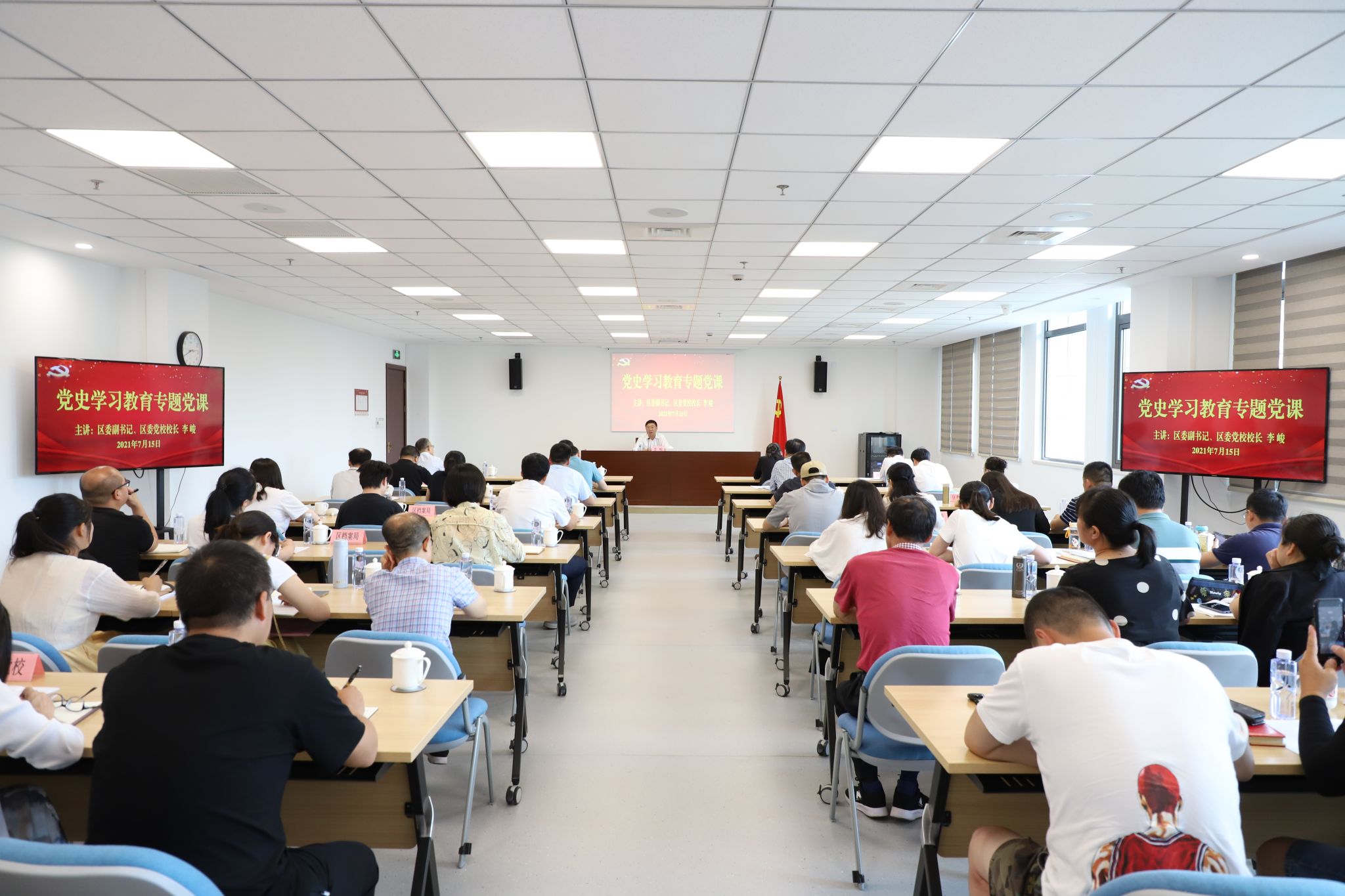 本网讯 为学习贯彻习近平总书记在庆祝中国共产党成立100周年大会上的重要讲话,深入推进党史学习教育,7月15日下午,崇明区委副书记、区委党校校长李峻为区委党校、区档案局全体党员上党史学习教育专题党课。