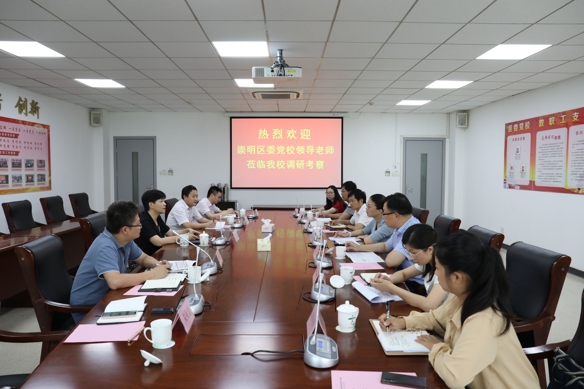 陈菊英对崇明区委党校一行的到来表示欢迎。她详细介绍了青浦党校近年来在干部教育培训、科研咨询、师资培养、行政后勤等方面的工作情况。陈菊英表示,崇明区委党校与青浦区委党校同是郊区党校,有很多相似之处,希望今后能在教学培训、科研咨政等方面开展深层次的交流合作,共同提升两校办学工作水平。