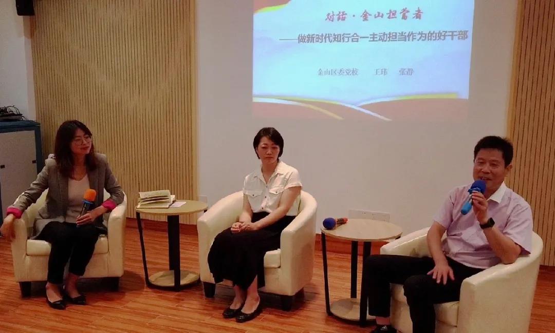 本网讯 为进一步增强党性教育的鲜活性和感召力,深化党员干部的情感认同、理性思考和行动自觉,10月9日下午,金山区第15期中青班开展访谈式教学《对话,金山担当者——做新时代知行合一主动担当作为的好干部》。