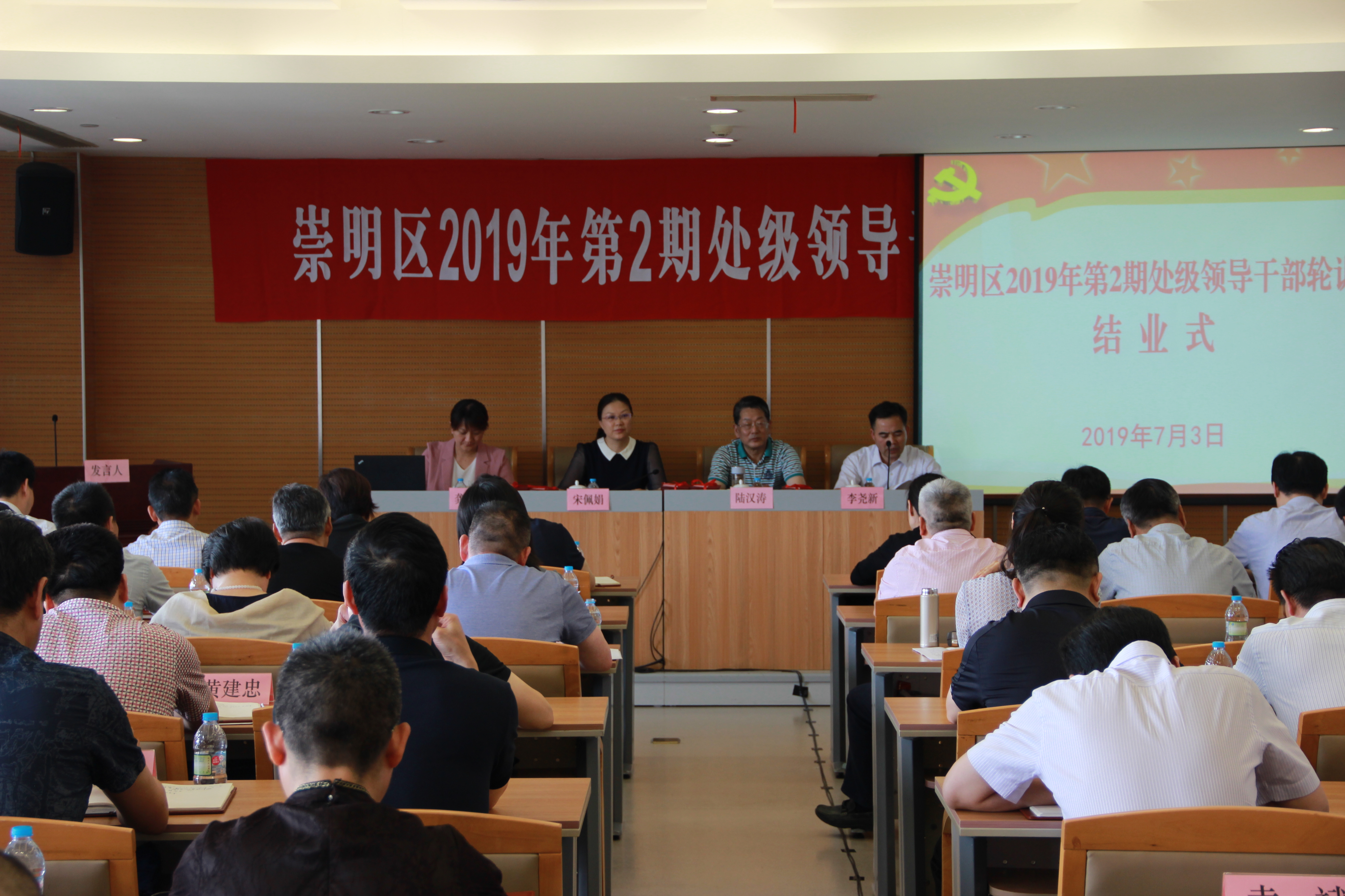 本网讯 7月3日下午,崇明区2019年第2期处级领导干部轮训班在区会议中心举行结业式。区委党校常务副校长宋佩娟、区委组织部跟班辅导员陆汉涛、区委编办副主任、区委组织部干部科科长龚胜瑜出席,结业式由区委党校副校长李尧新主持。