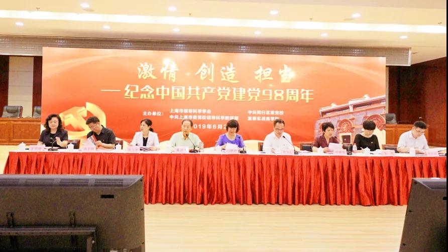 本网讯 为深入学习习近平总书记对落实新时代好干部标准提出的一系列重要指示,对标党中央要求,联系上海实际,探索进一步加强干部队伍建设奋力担当新时代新使命的方法和路径,近日,上海市领导科学学会、上海市委党校领导科学教研部、中共闵行区委党校和复泰实战商学院联合举办 “激情、创造、担当”学术研讨会暨纪念中国共产党建党98周年主题党日活动。