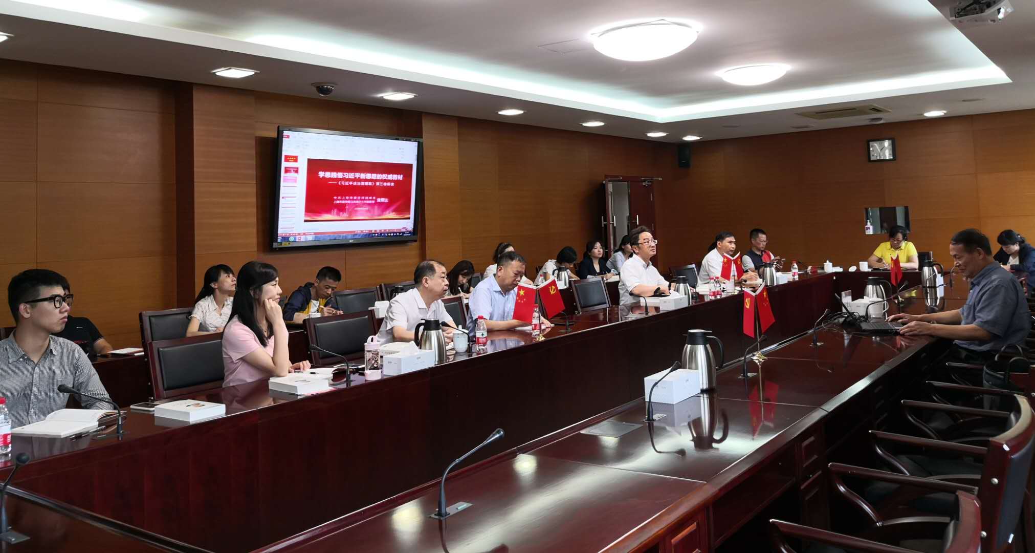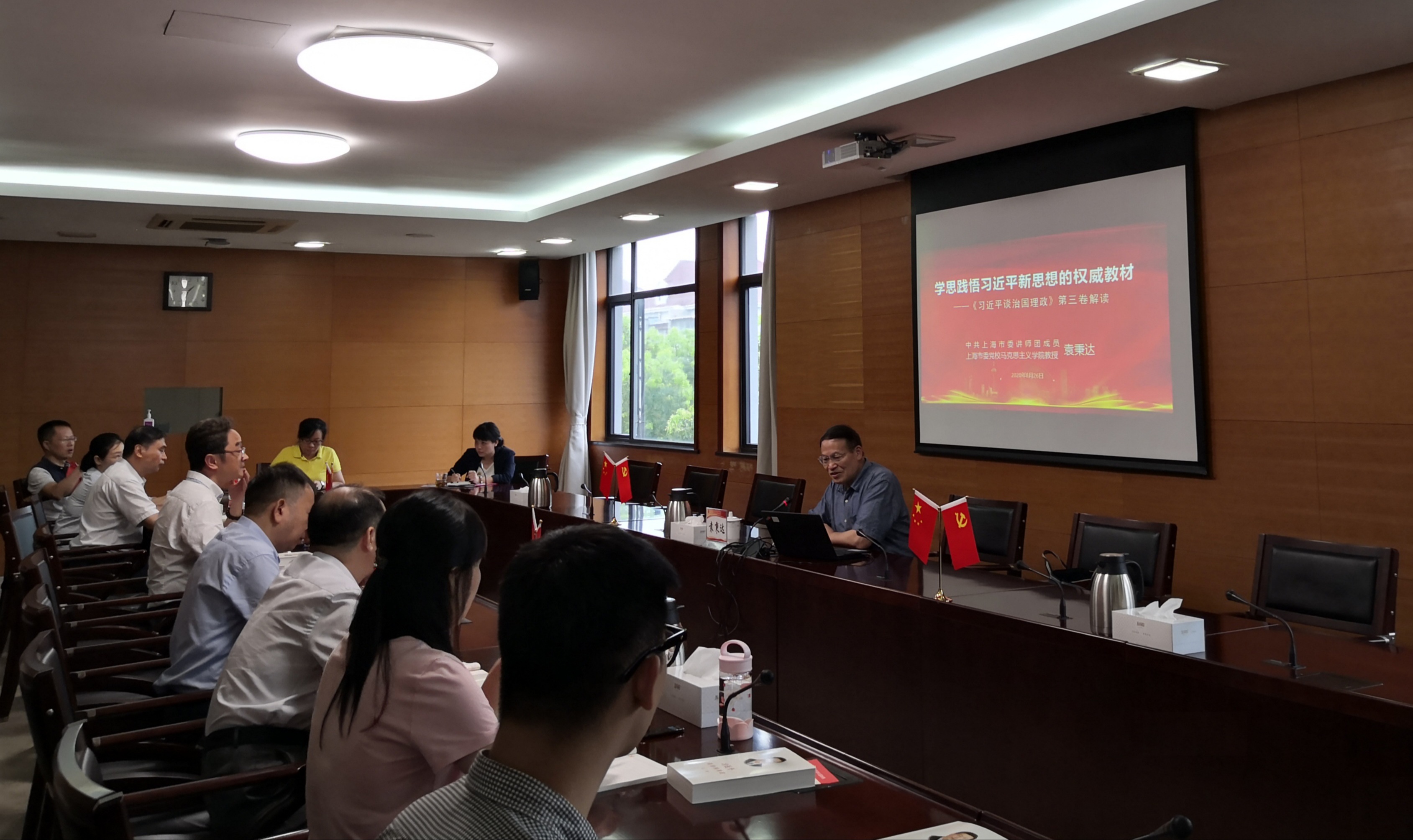本网讯 9月15日,静安区委党校举办名师讲坛,特邀中共上海市委讲师团成员、市委党校教授袁秉达围绕《习近平谈治国理政》第三卷作宣讲辅导报告。静安区委党校副校长倪辉主持,全体教师和其他党员同志参加了此次讲座。