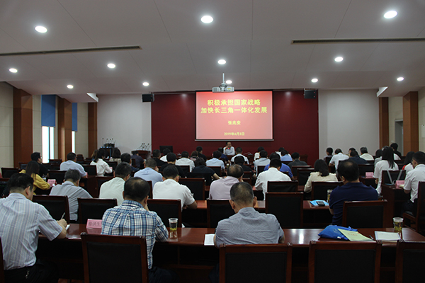 本网讯 为了更好地帮助学员理解长三角一体化国家战略的重大意义和总体要求,6月3日,全国人大代表,民建上海市委副主委,上海社会科学院副院长、研究员张兆安应邀来到青浦区委党校,为青浦区2019年第2期处干班作题为“积极承担国家战略,加快长三角一体化发展”专题讲座。区委党校常务副校长陈菊英主持。