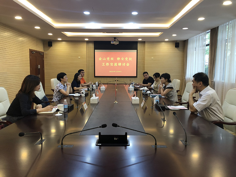 董捷对金山区委党校一行来校调研表示欢迎,简要介绍了静安区委党校的办学特色和理念。王耀华介绍了静安党校教学方式方面的创新成果,分享了案例教学及互动式教学方面的做法和经验。赵君和王仲礼详细介绍了教学管理方面的创新方法。