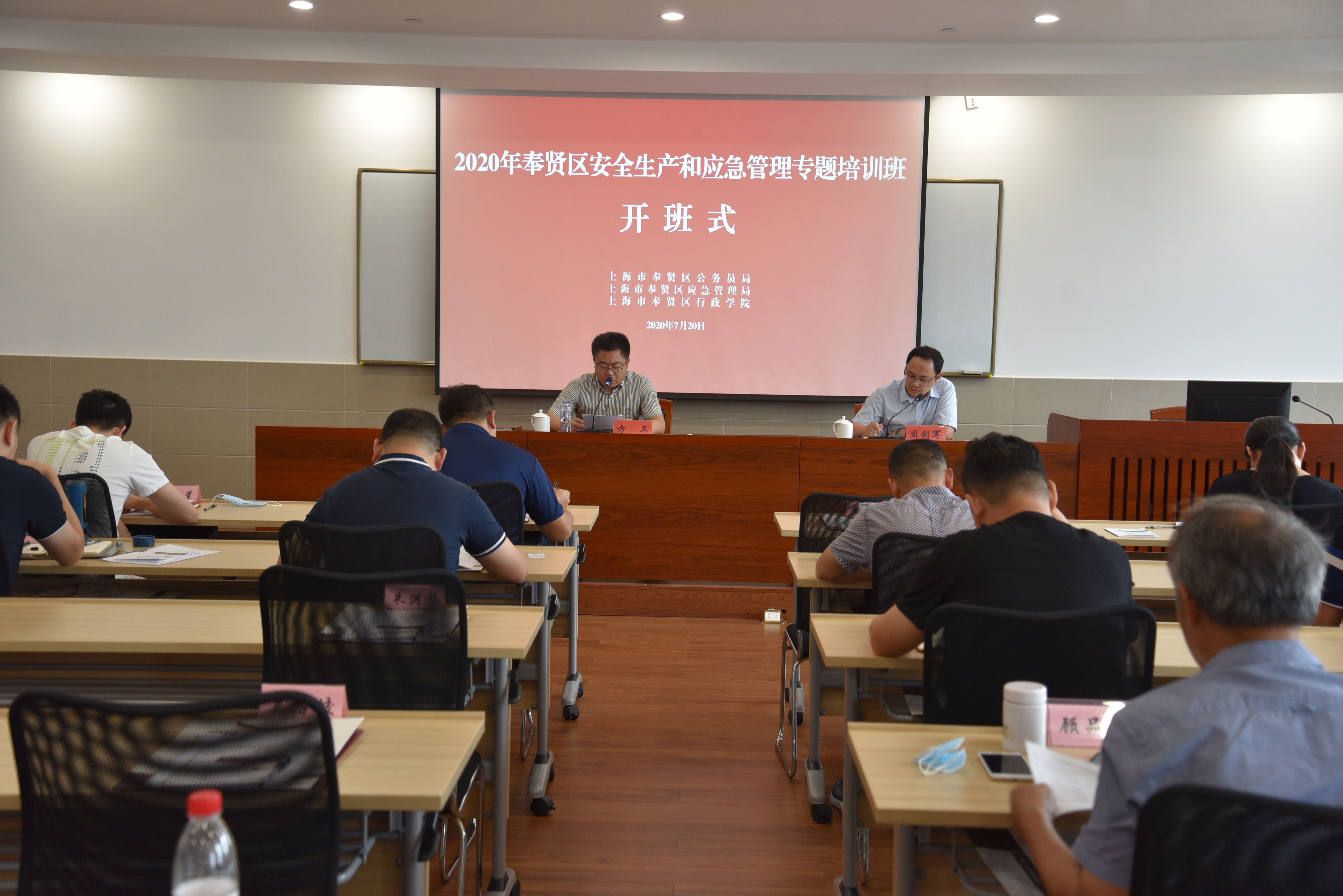 本网讯 为加强科级干部应急管理能力及主动防范化解重大安全风险能力建设,7月20日上午,2020年奉贤区安全生产和应急管理专题培训班在区行政学院开班。区应急管理局党组副书记、副局长方卫作开班动员,区委组织部公务员管理科周利军主持。
