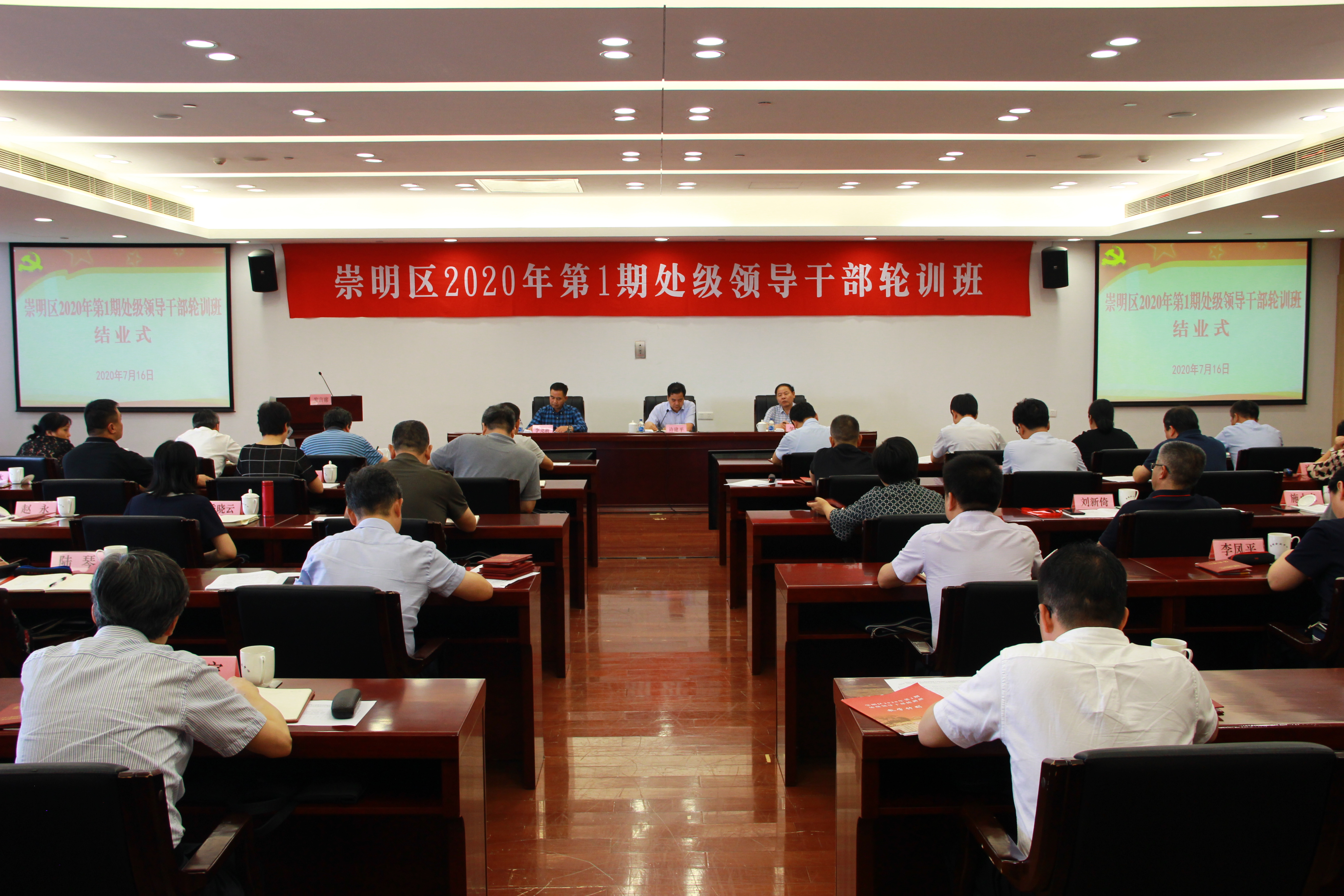 本网讯 7月16日下午,崇明区2020年第1期处级领导干部轮训班在区会议中心309室举行结业式。区委组织部副部长许建平、区委组织部跟班辅导员邹国平出席。结业式由区委党校副校长李尧新主持。