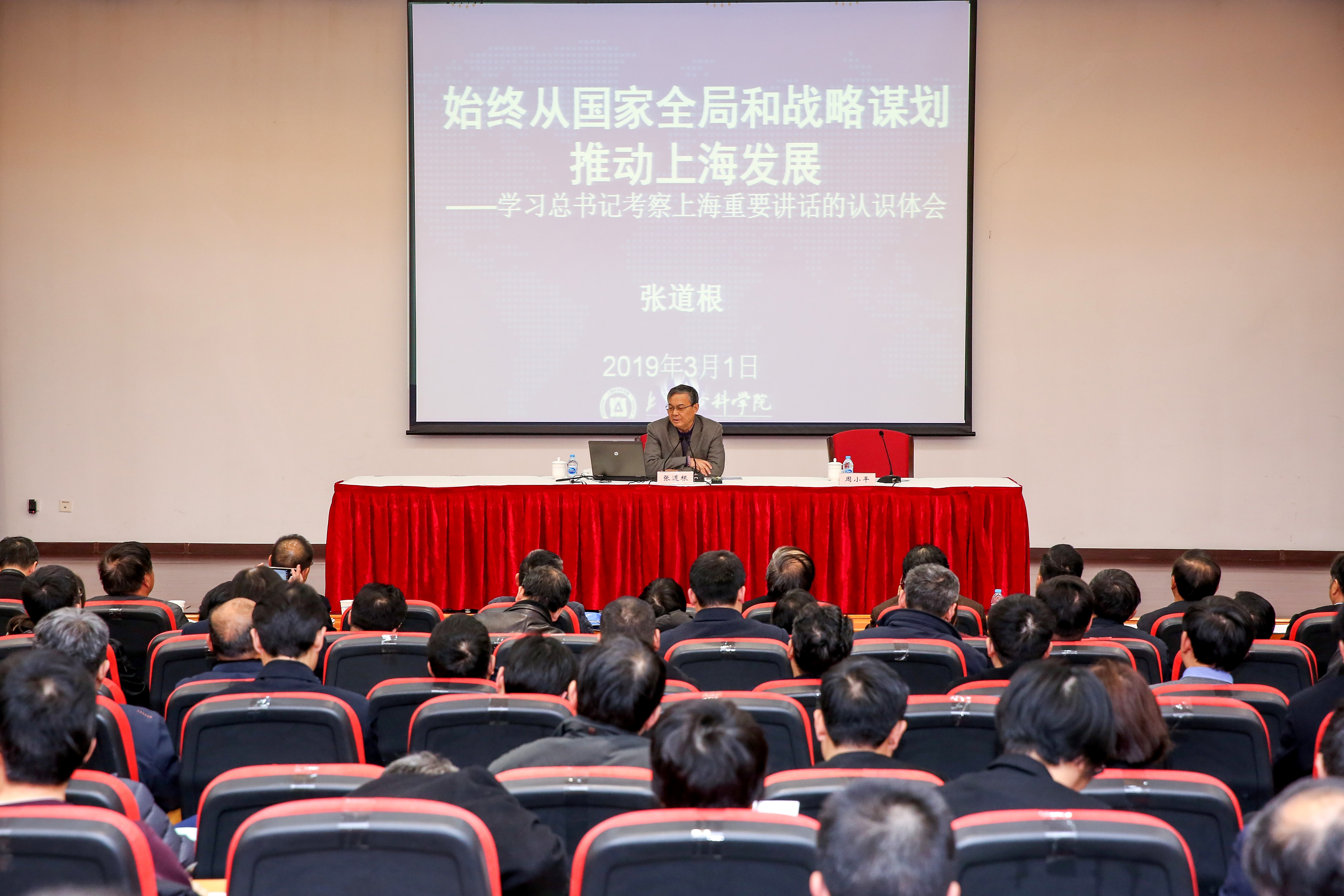 本网讯 3月1日,市社科院院长张道根在浦东新区区委党校为浦东新区“深入学习贯彻习近平总书记考察上海重要讲话精神专题示范班”学员作专题讲座。常务副校长周小平主持。