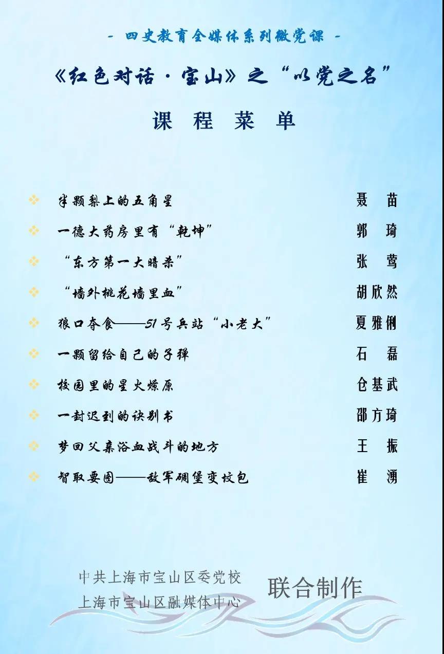 本网讯 7月1日,宝山区“四史”学习教育全媒体微党课项目《红色对话·宝山》通过“宝山汇”APP平台在线发布了系列课程《以党之名》第一课——《半颗梨上的五角星》。宝山区委常委、宣传部部长赵懿,人民网上海频道总经理金煜纯,媒体党课专家秦畅,宝山区委党校相关负责人、授课老师代表以及宝山区融媒体中心相关负责同志通过线上线下结合的方式,对《以党之名》系列微党课做了推介、展示和点评,线上网友也纷纷参与互动。