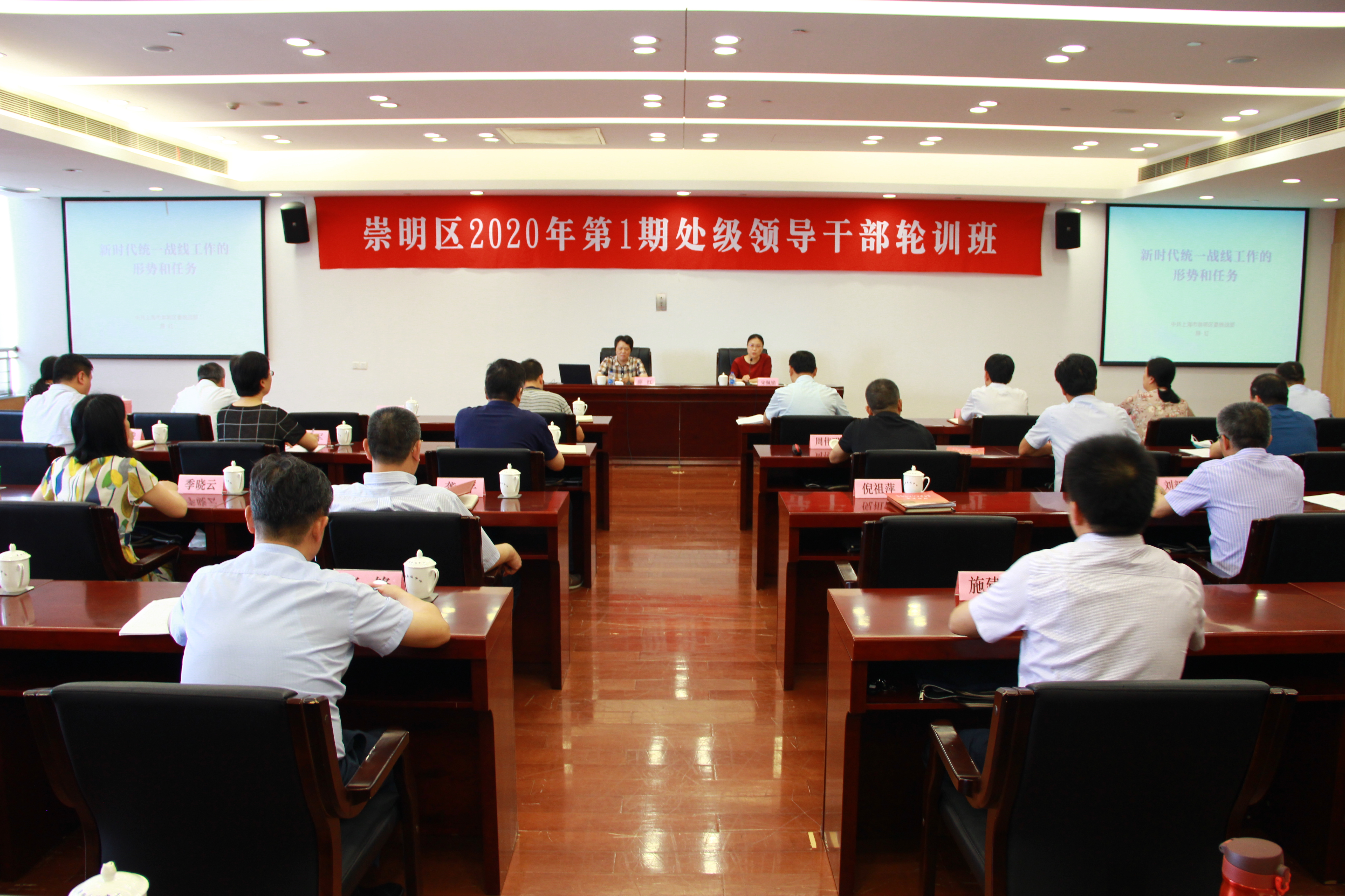 本网讯 7月1日下午,崇明区委常委、统战部部长薛红为区2020年第1期处级领导干部轮训班学员作题为“新时代统一战线工作的形势和任务”专题报告,崇明区委党校常务副校长宋佩娟主持。