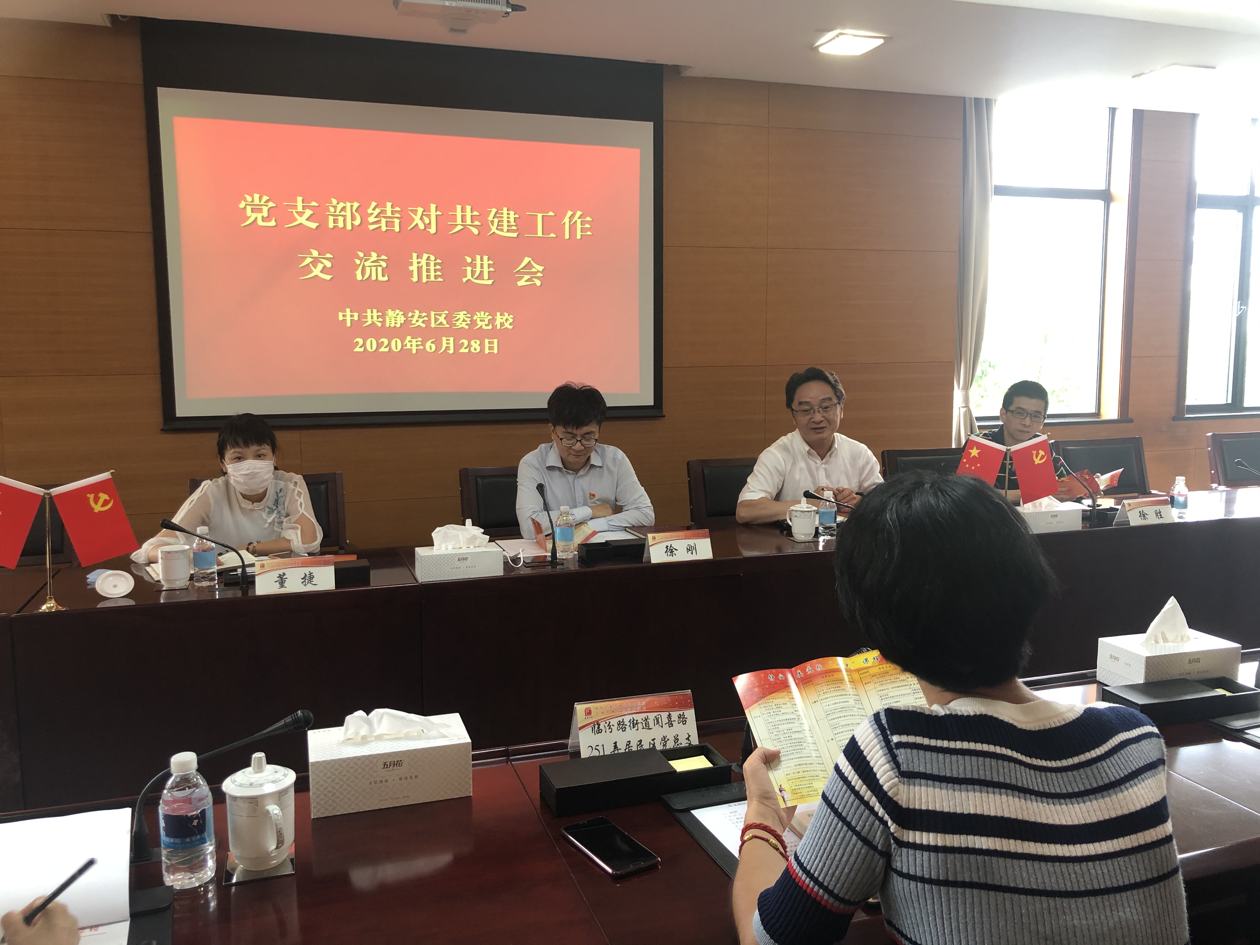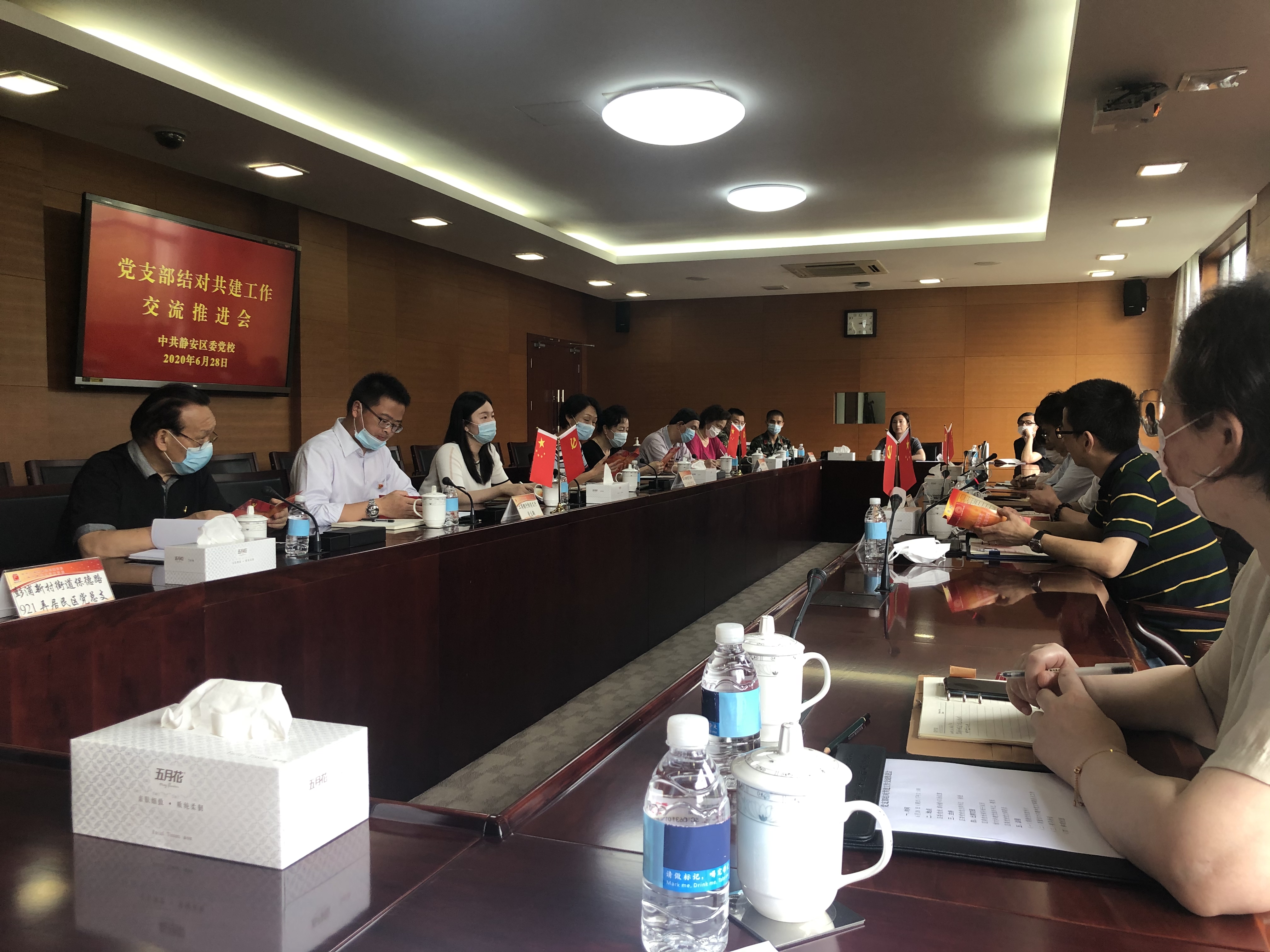 本网讯 为深入推进“四史”学习教育,贯彻落实党支部工作联系点制度相关要求,6月28日下午,静安区委党校组织召开党支部结对共建工作交流推进会。临汾路街道闻喜路251弄居民区党总支、工商银行彭浦支行党支部、临汾路街道群众文化协会党支部、上海市皮肤病医院医技第二党支部、彭浦新村街道保德路921弄居民区党总支、武警上海市总队执勤第五支队六中队党支部的书记和委员,以及校领导班子和全体支委参加了此次交流会。