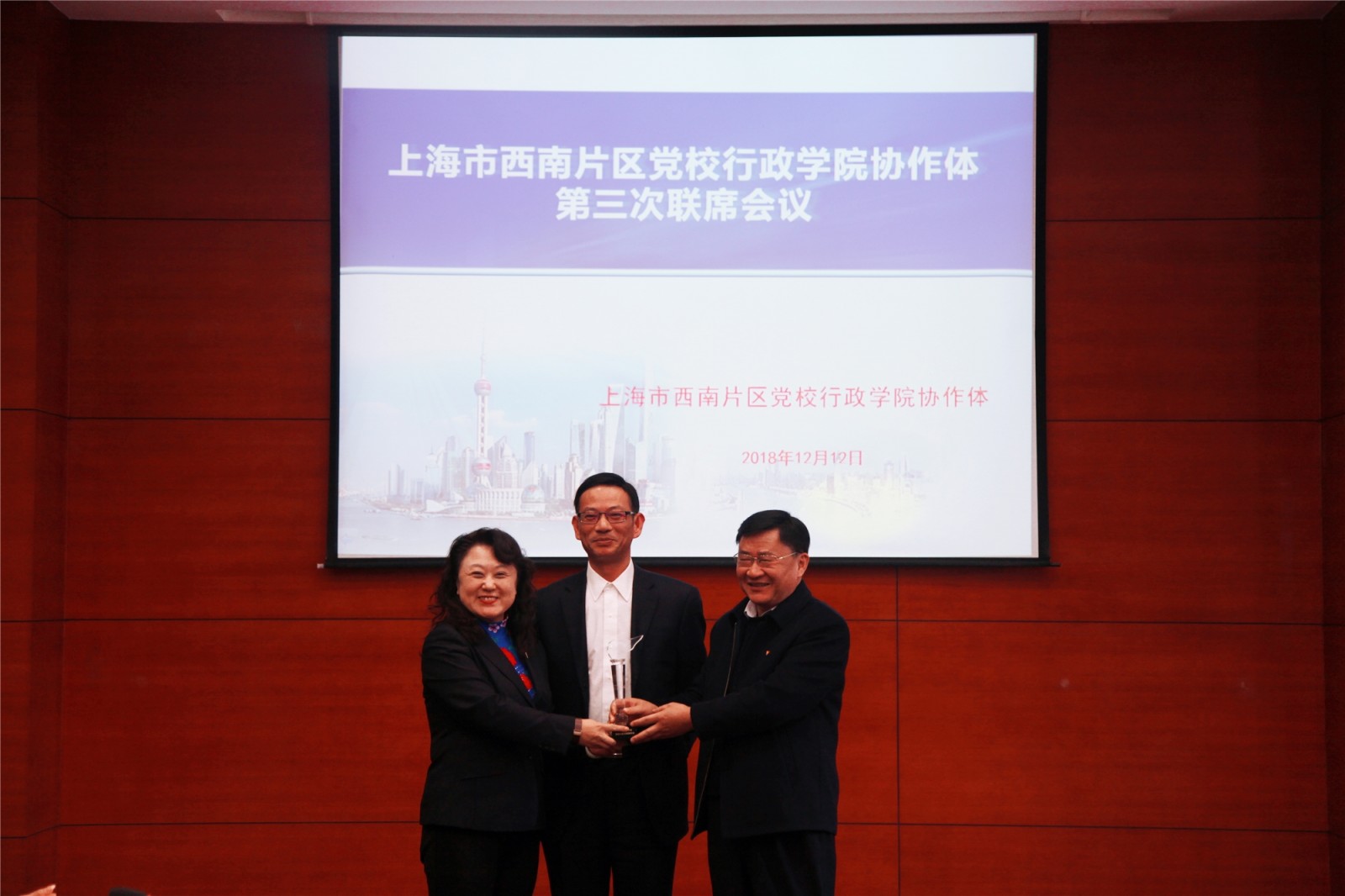 在西南片区协作体成员的共同见证下,闵行区委党校、闵行区行政学院将轮值主持单位标识移交给松江区委党校、松江区行政学院。