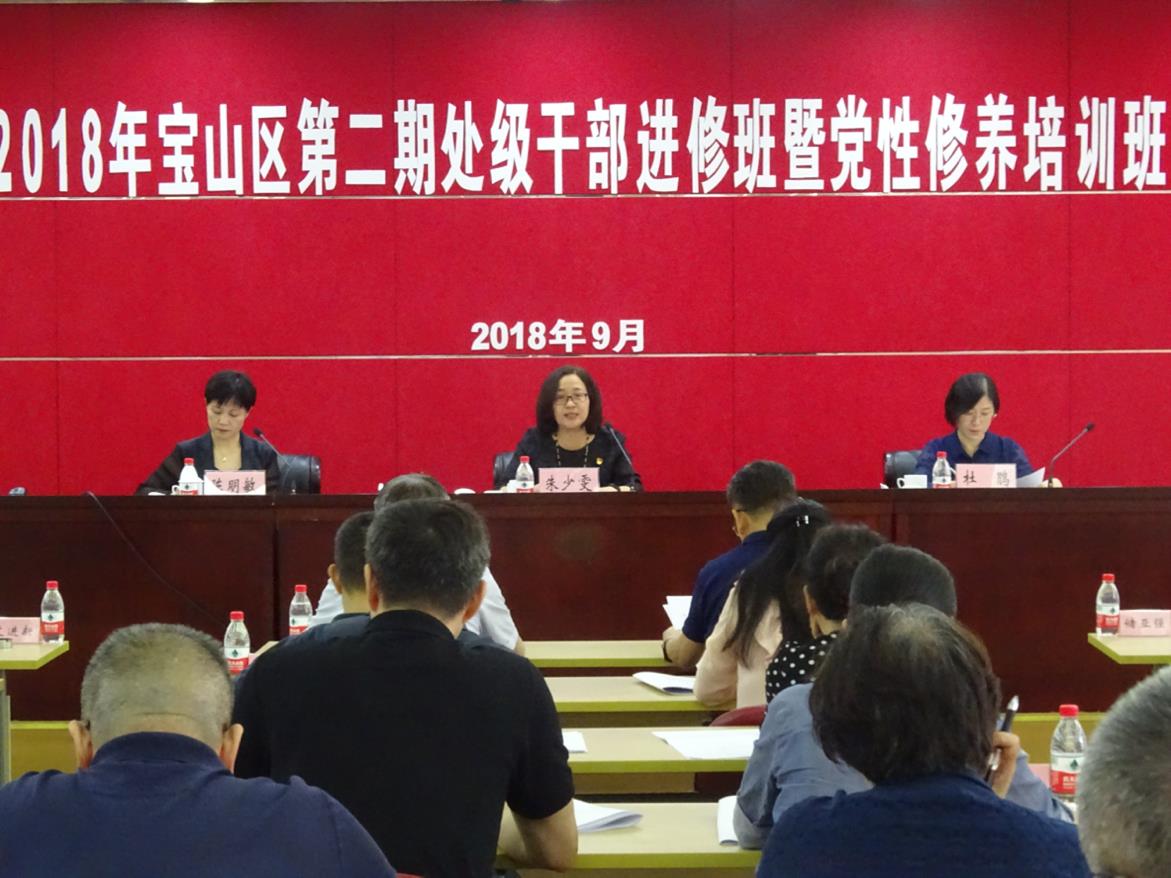 朱少雯指出,处级干部进修班暨党性修养培训班是党校重要的主体班次,也是宝山区干部教育培训的一个特色品牌。相较于往年,此次培训具有两大新特点。第一,此次培训是一个新的培训年度。近日,中央政治局审议了《2018—2022年全国干部教育培训规划》,指出干部教育培训在进行伟大斗争、建设伟大工程、推进伟大事业、实现伟大梦想中具有不可替代的重要地位和作用,对于培养造就忠诚干净担当的高素质专业化干部队伍、确保党的事业后继有人具有重大而深远的意义。第二,此次培训是在新时代背景下的培训。2018年是全面贯彻落实党的十九大精神的一年,新时代干部教育培训工作必须有新气象新作为。一方面,推进习近平新时代中国特色社会主义思想进党校、进班次、进课堂、进项目。另一方面,按照上海市党校系统两个大纲要求,将党性教育动员前置,真正做到党性教育贯穿始终。