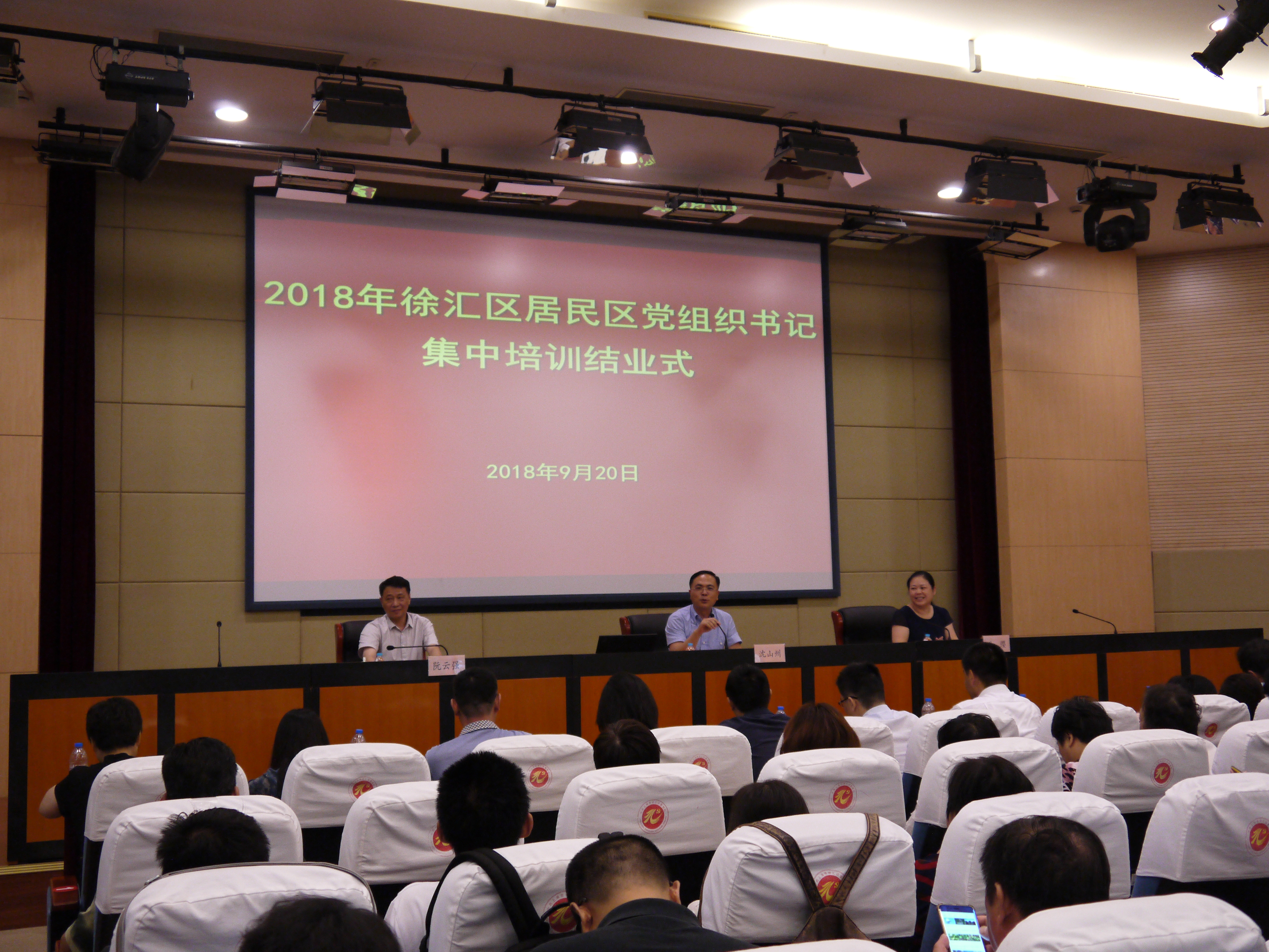 本网讯 9月20日下午,徐汇区居民区党组织书记培训班结业式在区委党校举行,徐汇区委常委、组织部长沈山州出席并进行结业讲话,区委组织部副部长、区社工委书记孔缨主持,徐汇党校常务副校长阮云强参加。