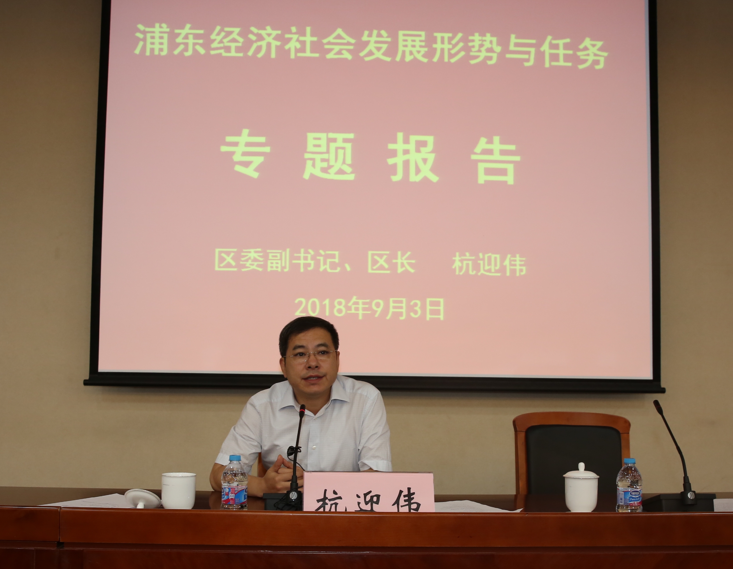 本网讯 9月3日上午,浦东新区区委党校举行2018年秋季第一轮主体班开学仪式。市政府副秘书长、区委副书记、区长杭迎伟出席开学仪式并为全体学员作“全面落实‘四高’战略,深入推进浦东开发开放实现新作为——浦东经济社会发展形势与任务”的专题报告。区委常委、组织部长谈上伟主持。区委党校常务副校长周小平出席并作开班说明及动员讲话。