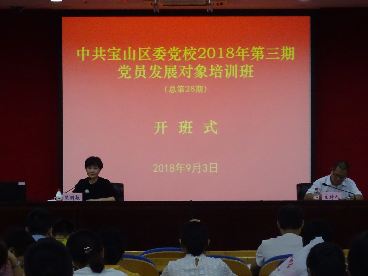本网讯 近日,宝山区2018年第三期党员发展对象培训班在宝山区委党校开班。区委党校副校长陈明敏出席开班式并作开班动员,来自全区各委办局、街镇和园区的161名学员参加了培训。