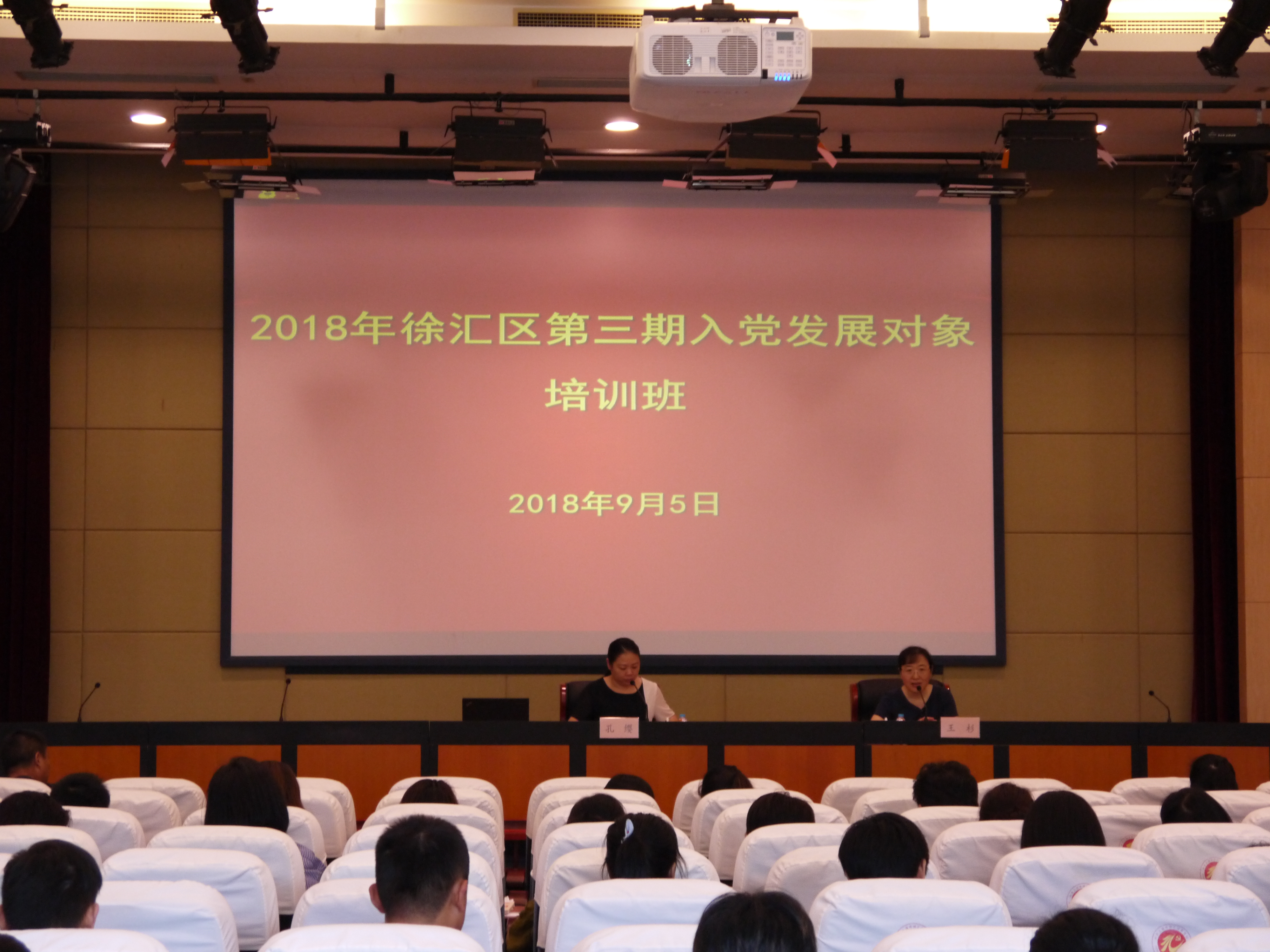 本网讯 近日,徐汇区委组织部和区委党校共同举办了2018年下半年的入党发展对象培训班。区委组织部副部长孔缨做开班动员,区委党校副校长王杉主持开班典礼并做课程介绍。为了确保党员发展的质量和严肃性,本次培训在开班之前,采用学前在线测试的方式对入党积极分子进行测评,测评成绩合格者方能进入本期培训班学习。