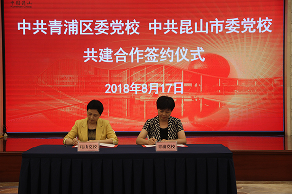 陈菊英和徐惠芳签署了共建合作框架协议,两校还围绕主体班教学、管理服务等方面内容进行了交流。青浦区委党校一行还参观了昆山市委党校“昆山之路”专题党性教育室、“智慧昆山”专题教室。
