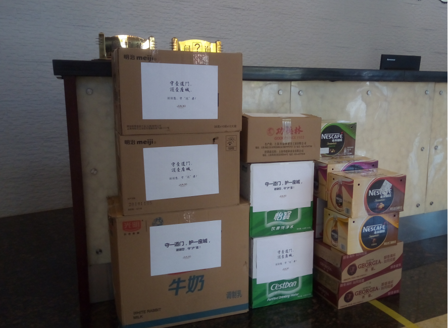 本网讯 3月16日中午12点29分,来自浦东新区区委党校的机场“转运人”范矿生,在经过几个小时的休息后打开房门,看到摆放在门口的一大堆物资,他的眼眶湿润了,第一时间在朋友圈致谢:“感谢小伙伴们的精准投喂,因为有你们,我们更有战斗的底气。”