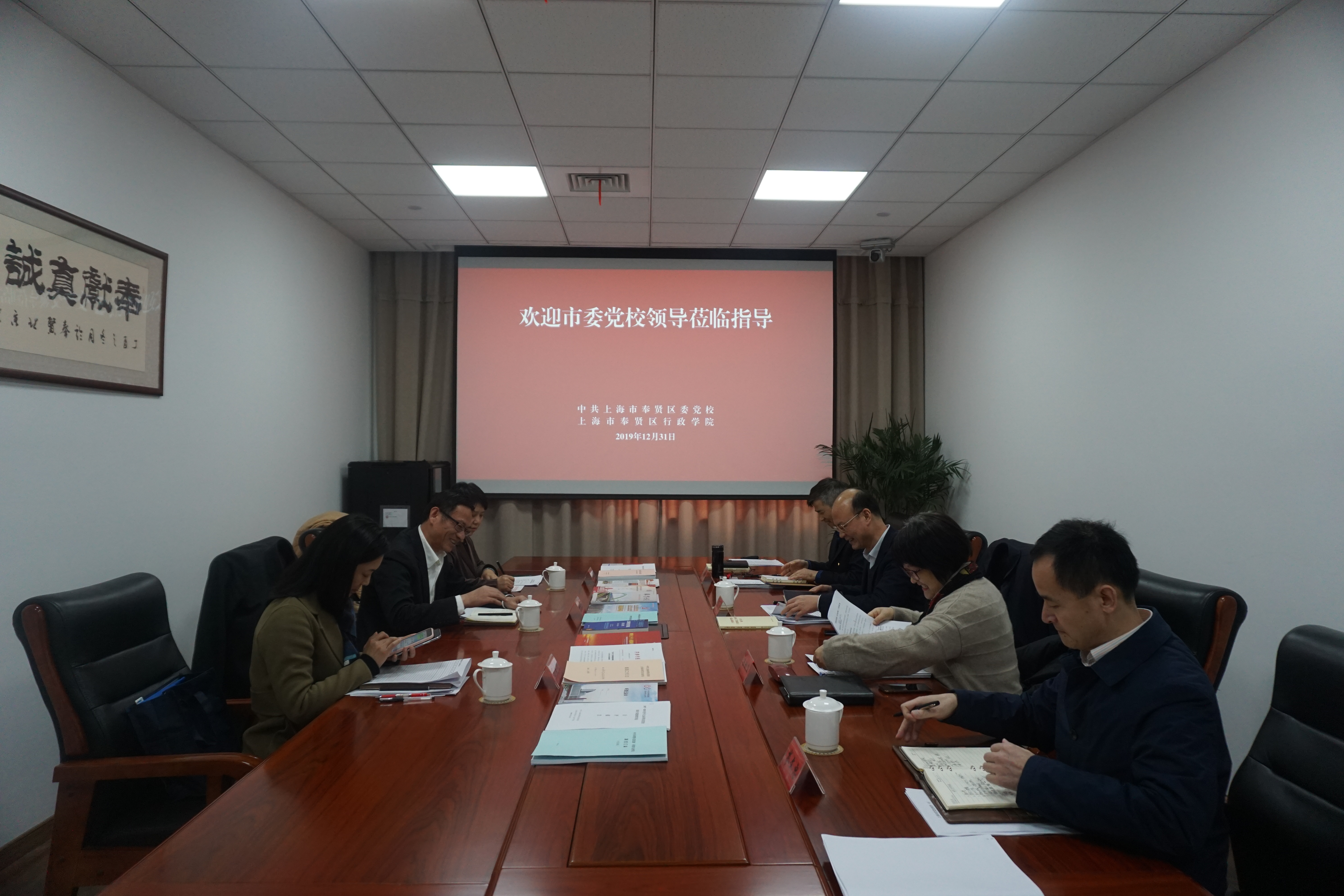 本网讯 2019年12月31日,市委党校(行政学院)副校(院)长谢根华、校院工作处处长任锴荣、副处长吴庆华赴奉贤区委党校调研指导工作。奉贤区区委常委、组织部部长、区委党校校长韦明主持调研会。区委党校(行政学院)常务副校院长王秋萍及校院领导班子成员参加调研座谈。